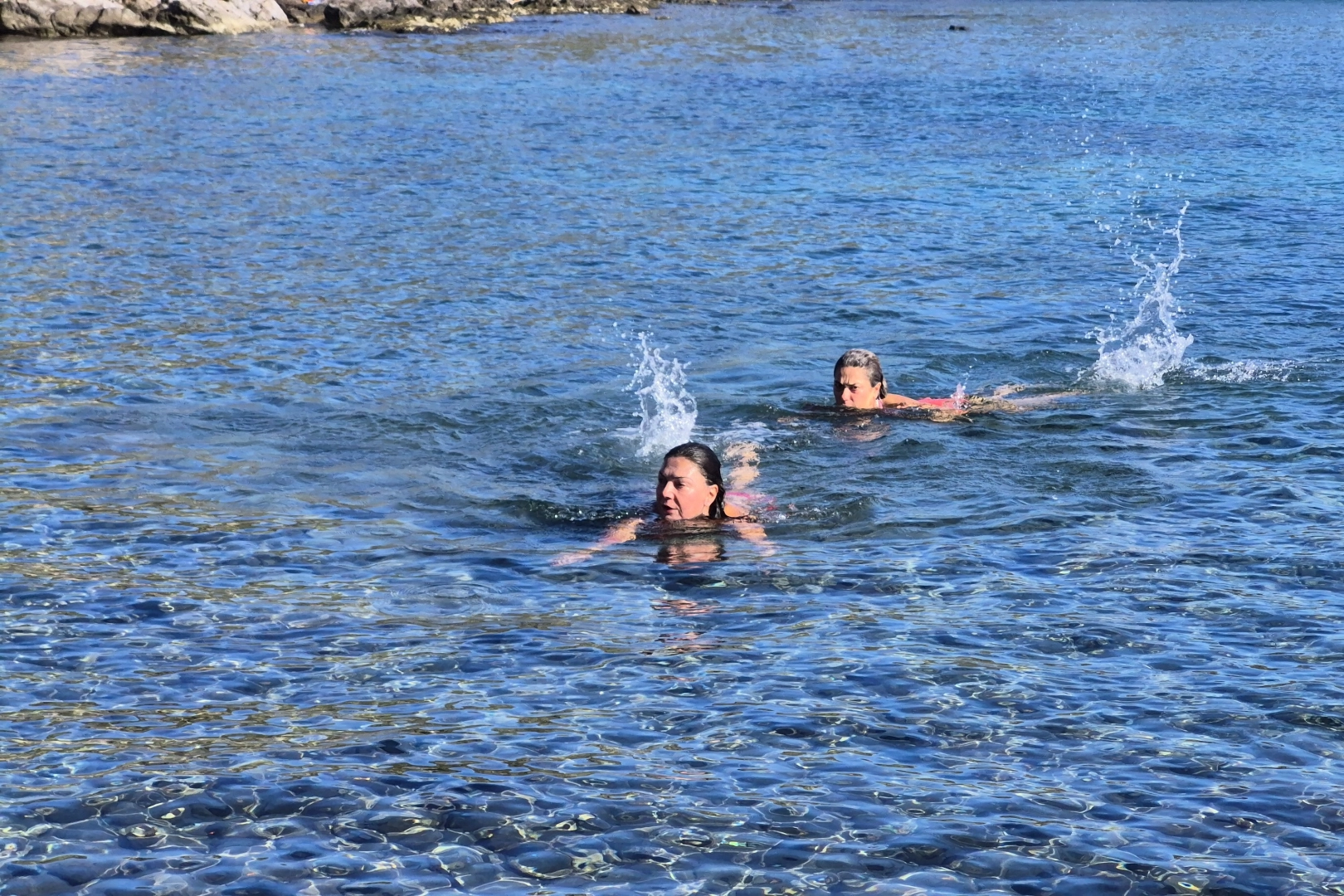 En yüksek hava sıcaklığının 20 derece ölçüldüğü ilçede deniz suyu sıcaklığı da 19 dereceyi buldu. Geçen yıllara göre daha ılık bir kış mevsiminin yaşandığı ilçede 3 gündür güneşli bir hava hakim. Plajda denize girenlerin yanında teknelerle açılan vatandaşlar da deniz ve güneşin tadını çıkarıyor.