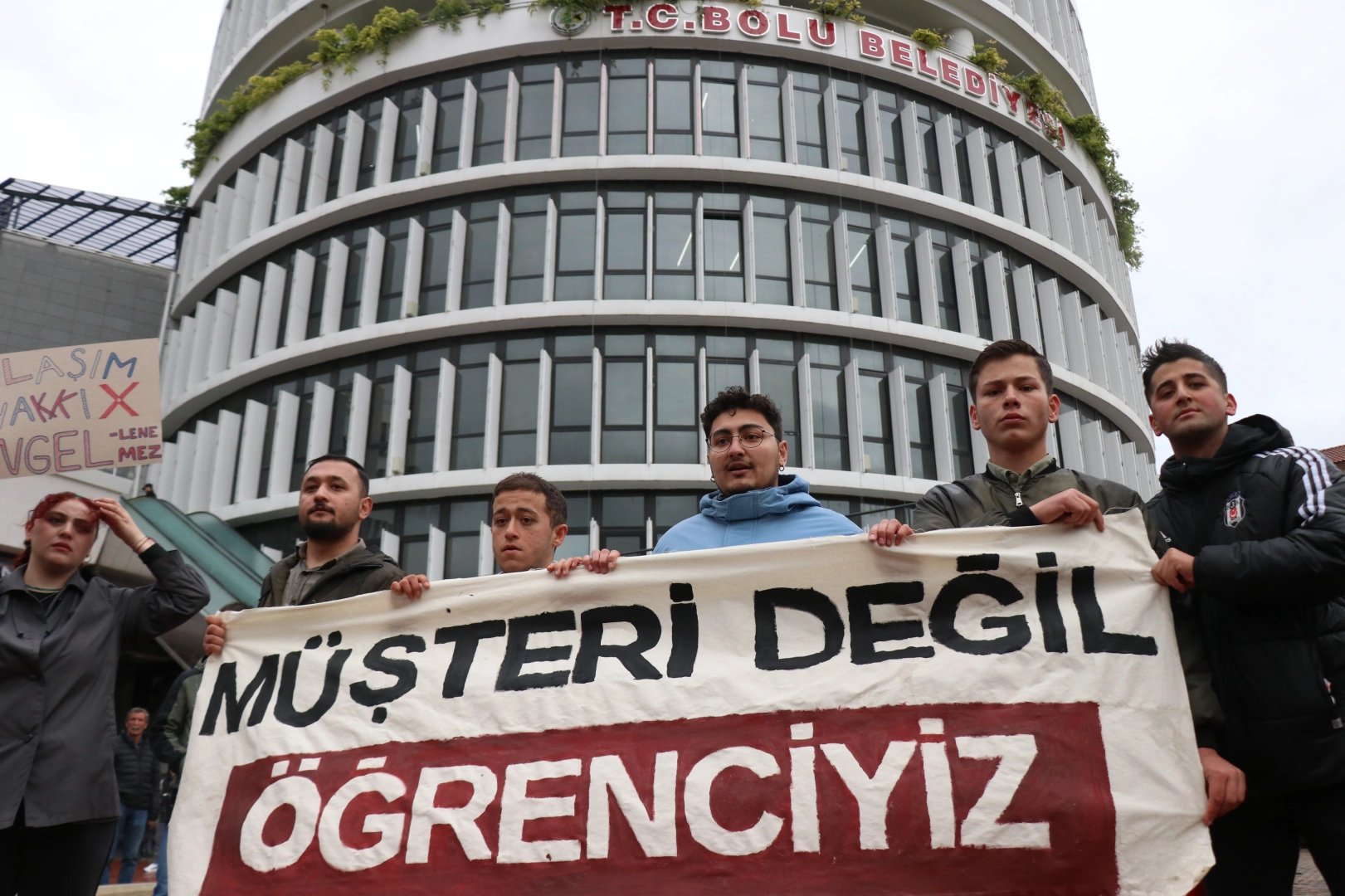 Öğrenci biletlerine yapılan yüzde 63’lük zamma tepki gösteren Bolu Abant İzzet Baysal Üniversitesi (BAİBÜ) öğrencileri, Valilik Meydanı’nda toplandı. Kalabalık öğrenci grubu, sağanak yağış altında sloganlarla Bolu Belediyesi binasının önüne kadar yürüdü. Grup adına belediye binası önünde açıklama yapan Gazetecilik Bölümü 1’inci sınıf öğrencisi Orçun Akyol ve Psikoloji Bölümü 1’inci sınıf öğrencisi Zeynep Dinç, zamların geri alınmasını talep etti. ‘Öğrenci burada başkan nerede’ sloganları atan gençler, belediyeden bir yetkili ile görüşmeden alandan ayrılmayacaklarını belirtti. Bolu Belediye Başkanı Tanju Özcan, öğrenciler arasından seçilen iki temsilci öğrenci ile görüştü.