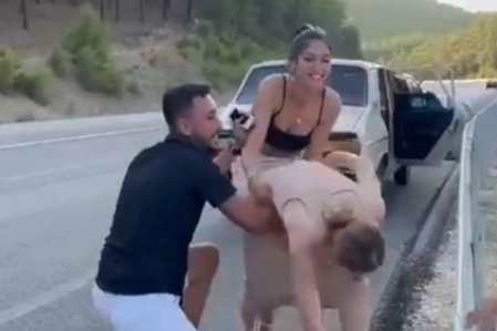 Sosyal medyada paylaşılan ve Antalya’da yaşandığı belirtilen olayda bir damat adayı, önce trafikte diğer sürücüler kavga ediyormuş gibi yaparak yerde dayak yedi.