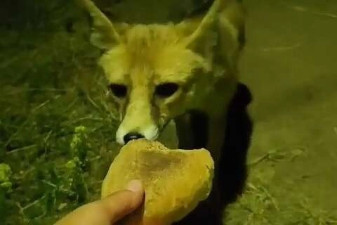 Kendisine uzatılan ekmeği öncelikle koklayan tilki, yemesi için ekmeğin yere bırakılmasıyla uzaklaştı. Daha sonra yine kendisine ikram edilen ekmeğin yanına gelen tilki, uzun bir süre sağına soluna bakındıktan sonra gözden kayboldu.