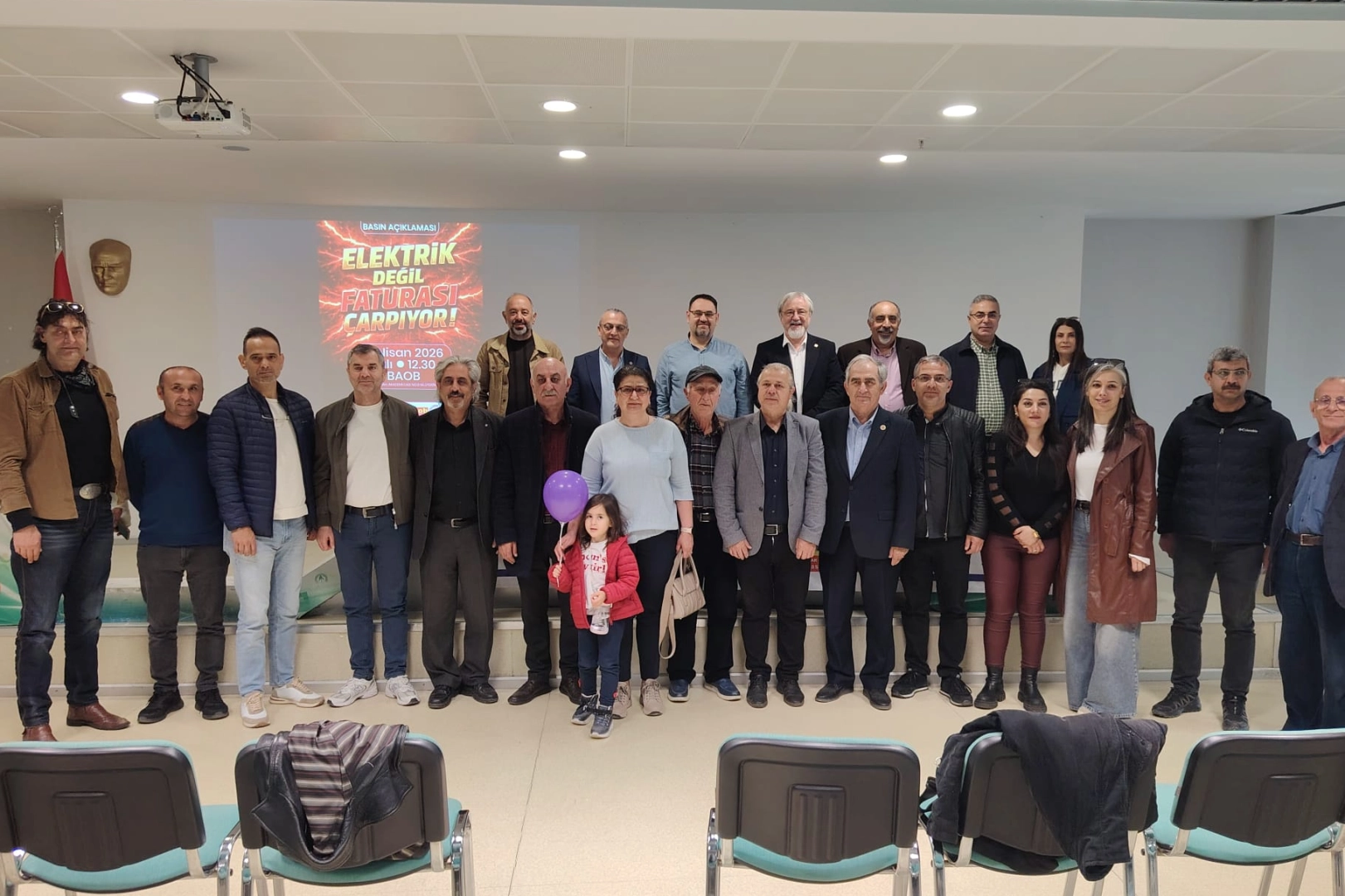 “Elektrik değil, faturası çarpıyor” başlığıyla 14 Nisan 2026 tarihinde gerçekleştirilen açıklama, BAOB Ortak Salon’da yapıldı. Açıklamayı TMMOB Elektrik Mühendisleri Odası Bursa Şubesi Başkanı Burak Özgen okudu.