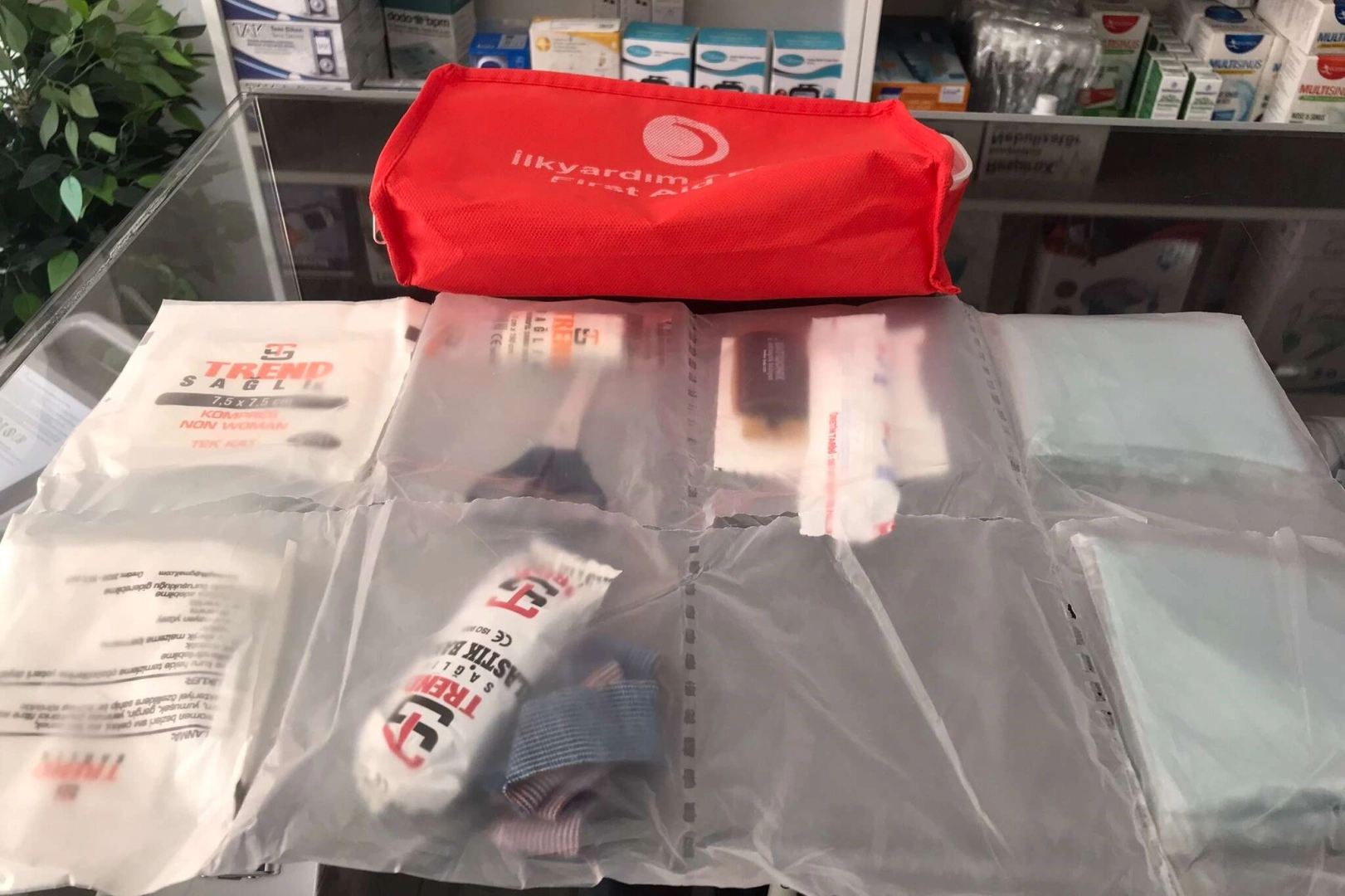 Biyomedikal çalışanı Ümit Bütün, deprem çantalarının yanı sıra ilk yardım çantalarının da afet durumlarında çok önemli olduğunu söyledi. İlk yardım çantalarının panik halinde unutulmaması için görünür bir yerde muhafaza edilmesi gerektiğinin altını çizen Bütün, “Kahramanmaraş depremlerinden sonra bazı yerlerde ilk yardım çantası fiyatları fahiş bir şekilde arttı ama biz sabit tutuyoruz. İlk yardım çantasının ana amacı, kriz anlarında kendi vücudumuzdaki küçük yaralanmaları tedavi edebilmek için kullanılabilecek malzemeleri barındırmasıdır. Küçük yaralanmaları hızlıca kapatabilmemiz için içerisinde sargı bezi ve batikonlar bulunur, keskin yaraların iltihap kapmasını önlemeyebilmek için kullanılır. İçlerinde boyunluk bulunan çantalar da bulunuyor ve şu ara en çok tercih edilenler boyunluk olan çantalar. Boyun zedelenmeleri ve bu tarz sorunlarda boyunluk kullanılabiliyor. İçerisinde bol ve çeşitli ürün olan çantalar da var ama daha basit ve taşınması kolay çantalar daha çok tercih ediliyor. Bunların içlerinde sargı bezi, makas, batikon, spanç ve boyunluk gibi o an ihtiyaç olacak ürünler bulunuyor. Vatandaşlar bu çantaları ulaşımı kolay olacak yere koyarsa daha iyi olur çünkü bu tarz deprem anlarında göz önünde bulundurulmadığı zaman o panik halinde unutulabilir. Ecza dolabı tarzında yüksek bir noktada olursa deprem anında hemen görülüp alınabilir. Ayrıca bu ürünler steril halde olduğu için ambalajını açmadığımızda bozulma olmuyor, sürekli yeni çanta hazırlamaya gerek yok” şeklinde konuştu.