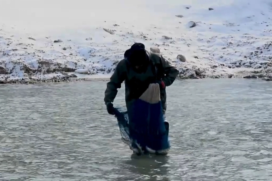 Ağrı'nın Diyadin ilçesindeki Murat Kanyonu, buzla kaplı yüzeyine rağmen balıkçılara ev sahipliği yapıyor. Halk, buzları kürekle kırarak balık avlıyor. Bölge sakinleri, kışın burada avladıkları balıkların tadının daha güzel olduğunu belirtiyor.