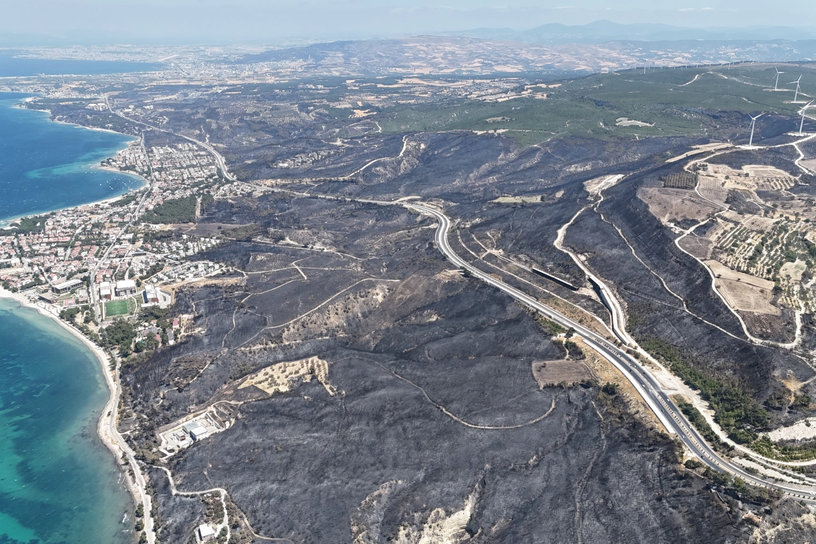 Yangında kül olan ormanlar havadan dron ile görüntülendi. Çanakkale'nin Kepez beldesinde 11 Ağustos günü saat 13.30 sıralarında çıkan yangın 13 Ağustos 14.25 sıralarında tamamen kontrol altına alındı. Bölgede soğutma çalışmaları devam ederken yangının verdiği tahribat dron ile havadan görüntülendi.
