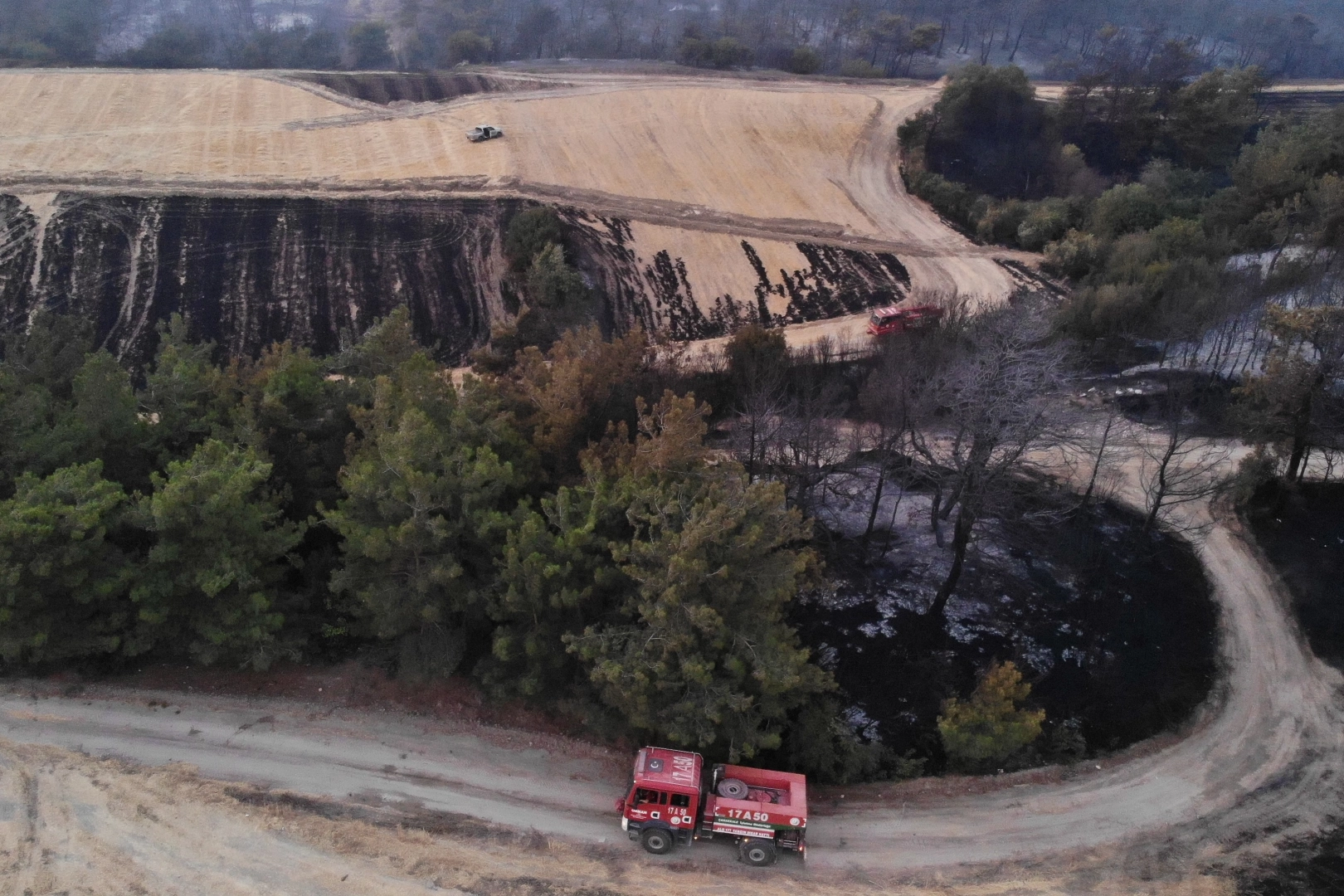 Ekipler günün aydınlanmasıyla birlikte havadan müdahaleye başladı. Yanan alanlar drone ile görüntülendi.