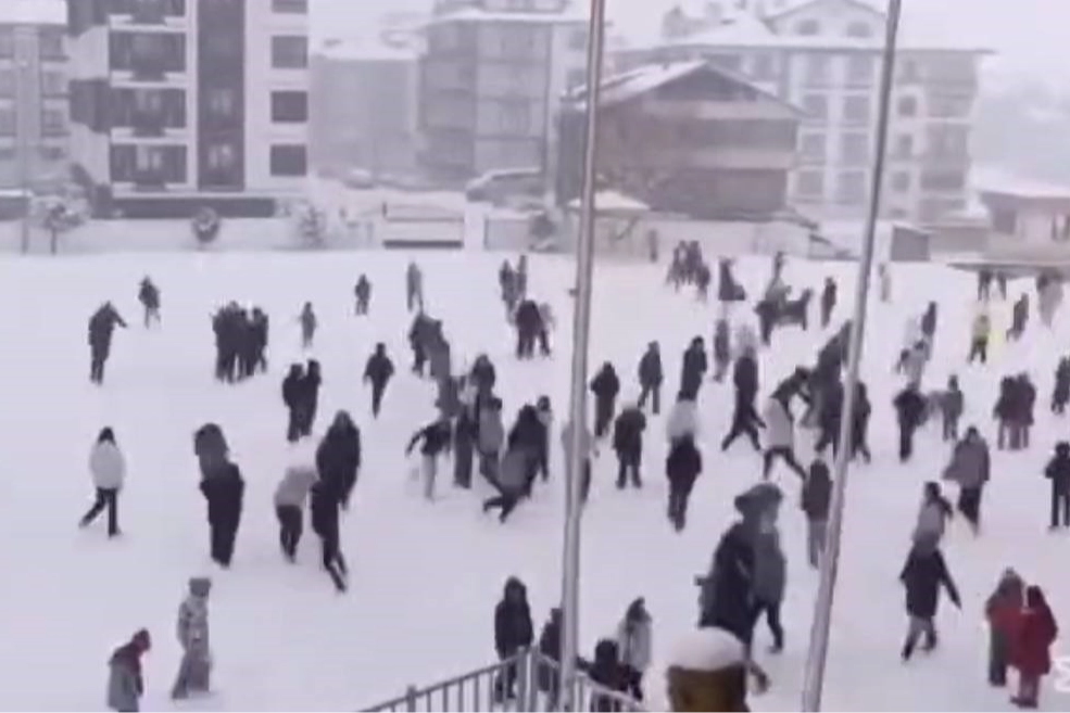 Bolu Gerede Seyit Mithat Dayıoğlu Ortaokulu'nda ders işleyen öğrenciler okul müdürünün sürpriz anonsuyla kar topu oynamaya çıktı.