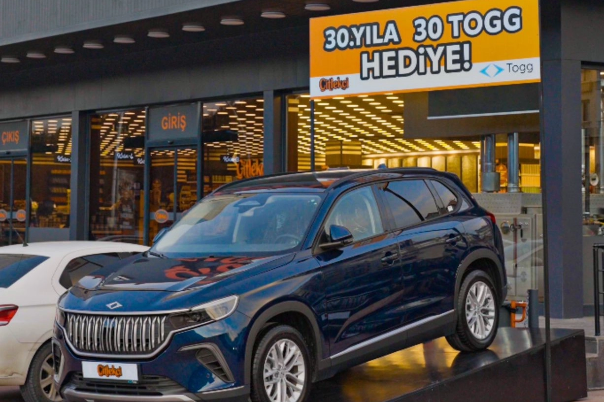 Ankara merkezli olarak Türkiye'nin dört bir yanında şubeleşmeye başlayan Çitlekçi Mağazacılık 30'uncu yılında müşterilerini araba sahibi yapıyor. Türkiye geneli Çitlekçi mağazalarından veya citlekci.com.tr adresinden tek seferde 500 TL ve katları tutarında alışveriş yapan herkes TOGG kazanma şansı yakalayacak.