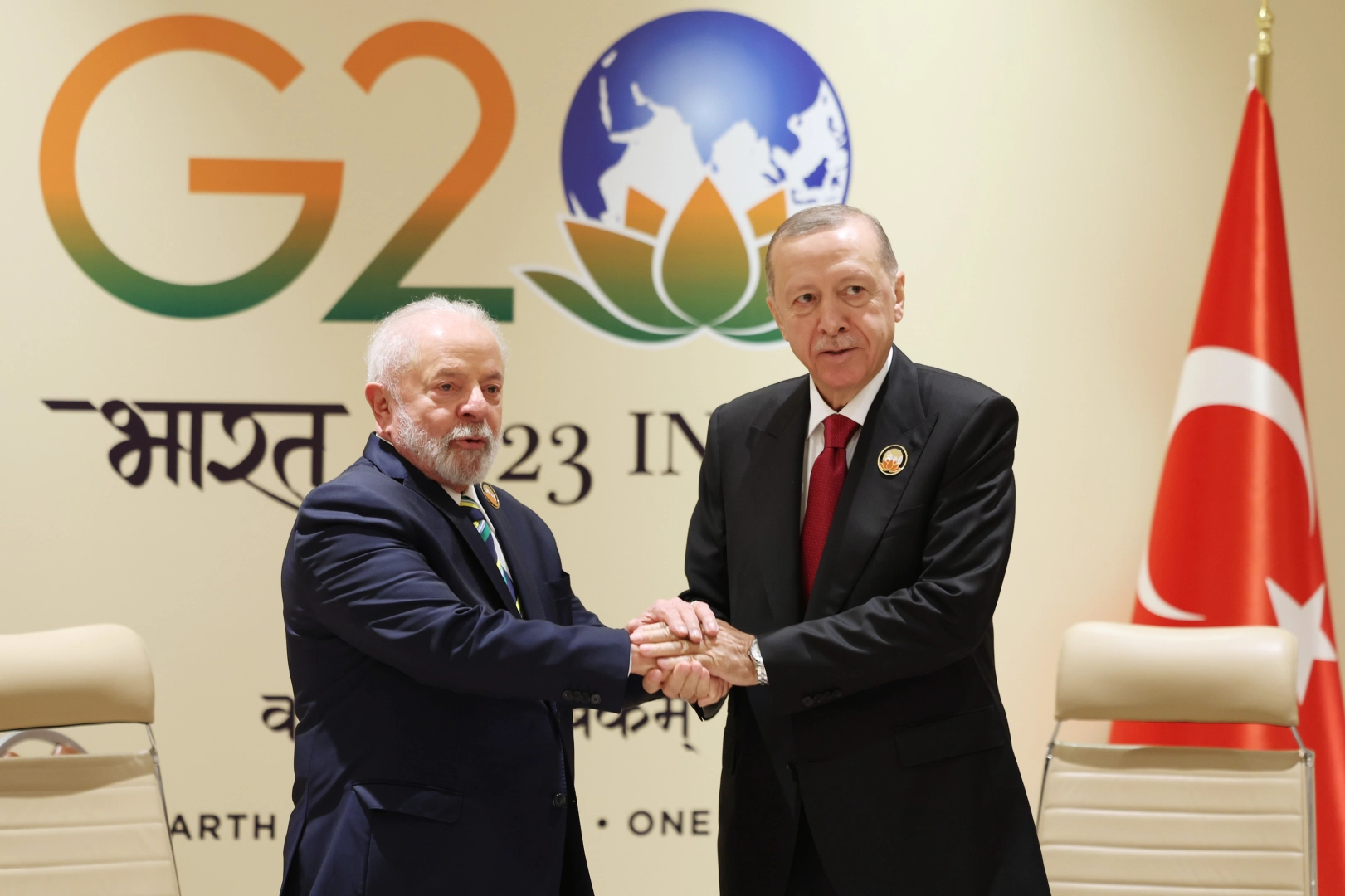 Cumhurbaşkanı Recep Tayyip Erdoğan, G20 Liderler Zirvesi kapsamında bulunduğu Hindistan'ın başkenti Yeni Delhi'de ikili temaslarda bulunuyor. Cumhurbaşkanı Erdoğan, BAE Devlet Başkanı Muhammed Bin Zayed Al Nahyan ile görüşmesinin ardından Brezilya Devlet Başkanı Lula da Silva ile ile bir araya geldi.
