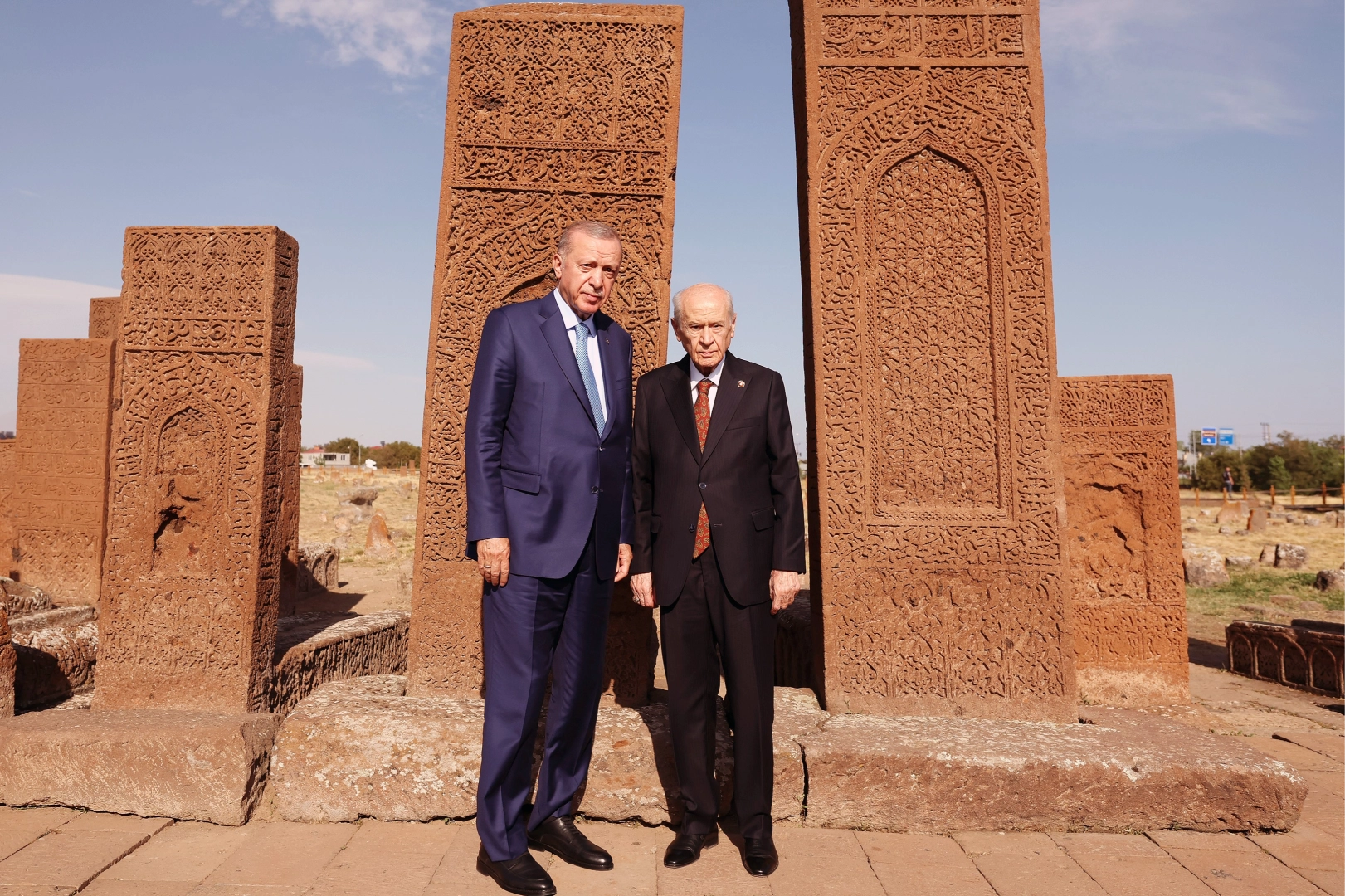 Malazgirt Zaferi'nin 953'üncü yılı kutlamaları kapsamında Bitlis'in Ahlat ilçesinde düzenlenecek etkinliklere katılmak üzere Ahlat ilçesine gelen Cumhurbaşkanı Erdoğan, bakanlar kurulu, kuvvet komutanları ve kalabalık bir heyetle Bitlis’teki ziyaret ve programlarına devam ediyor.