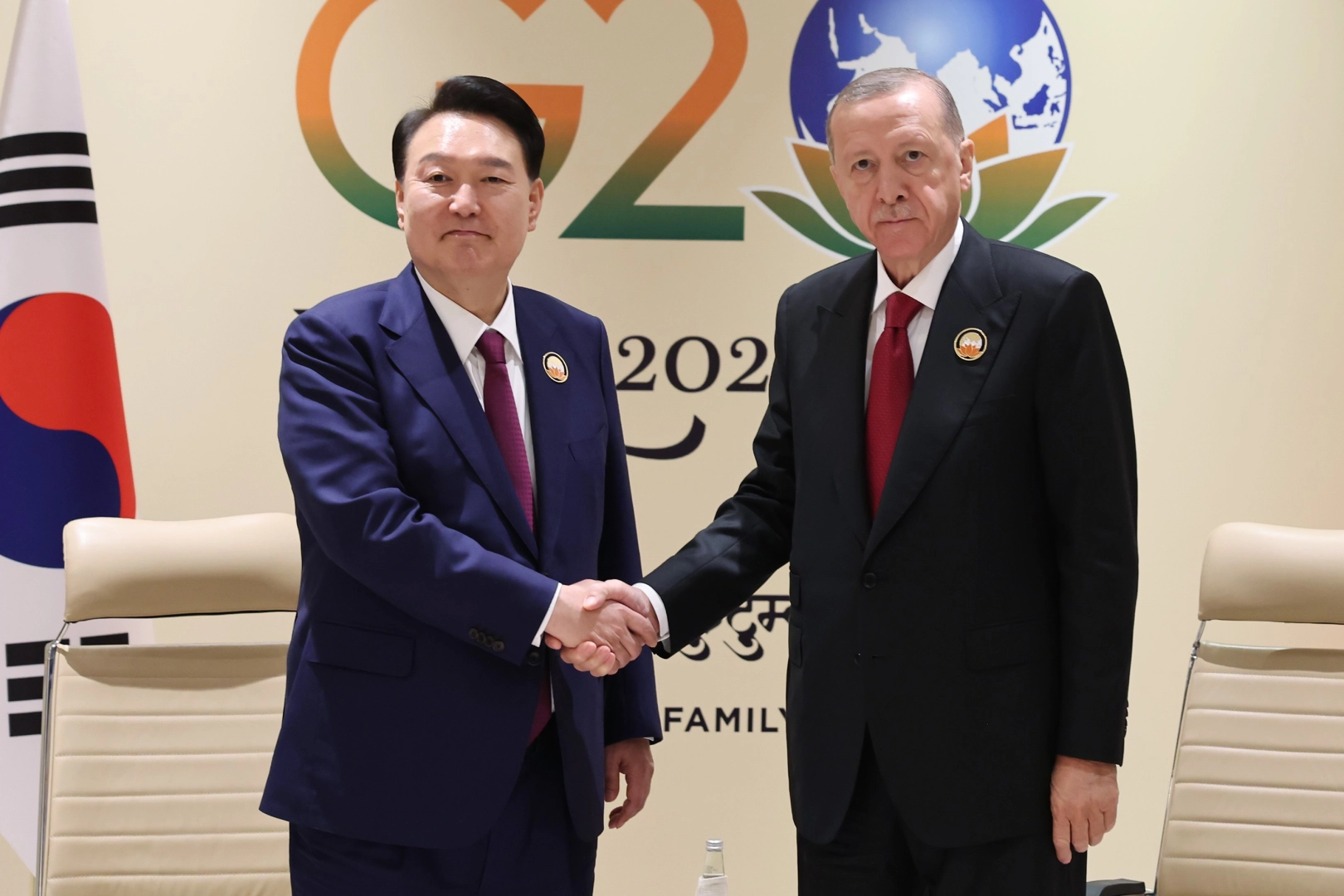 Cumhurbaşkanı Erdoğan, Güney Kore Devlet Başkanı Yoon Suk-Yeol ile bir araya geldi. Görüşmede, Türkiye-Güney Kore ikili ilişkileri ele alınırken, mevcut ilişkileri geliştirecek adımlar ile iki ülkeyi ilgilendiren bölgesel ve küresel meseleler hakkında da görüş alışverişinde bulunuldu.