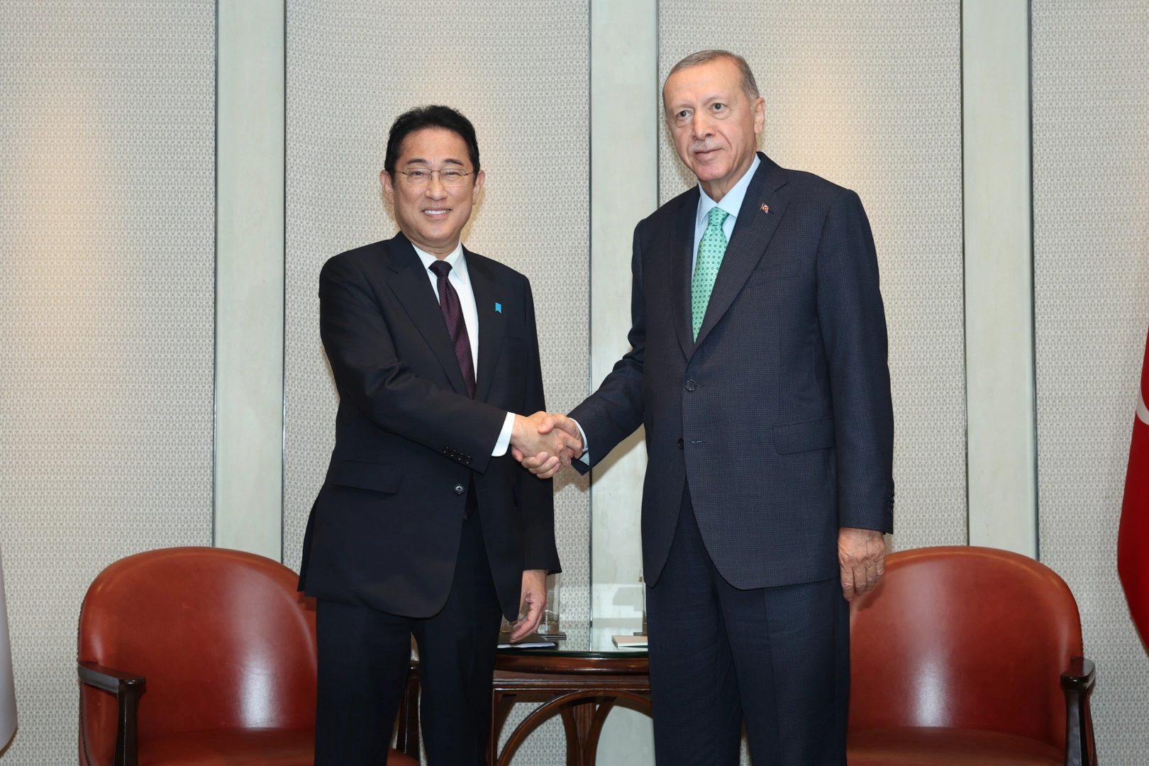 Cumhurbaşkanı Recep Tayyip Erdoğan, G20 Zirvesi için geldiği Hindistan’ın başkenti Yeni Delhi’de resmi temaslarına başladı. Ziyaret kapsamında Erdoğan, Japonya Başbakanı Fumio Kishida ile bir araya geldi. Başbakan Fumio’yu Cumhurbaşkanı Erdoğan'ın konakladığı otelin girişinde Dışişleri Bakanı Hakan Fidan karşıladı.
