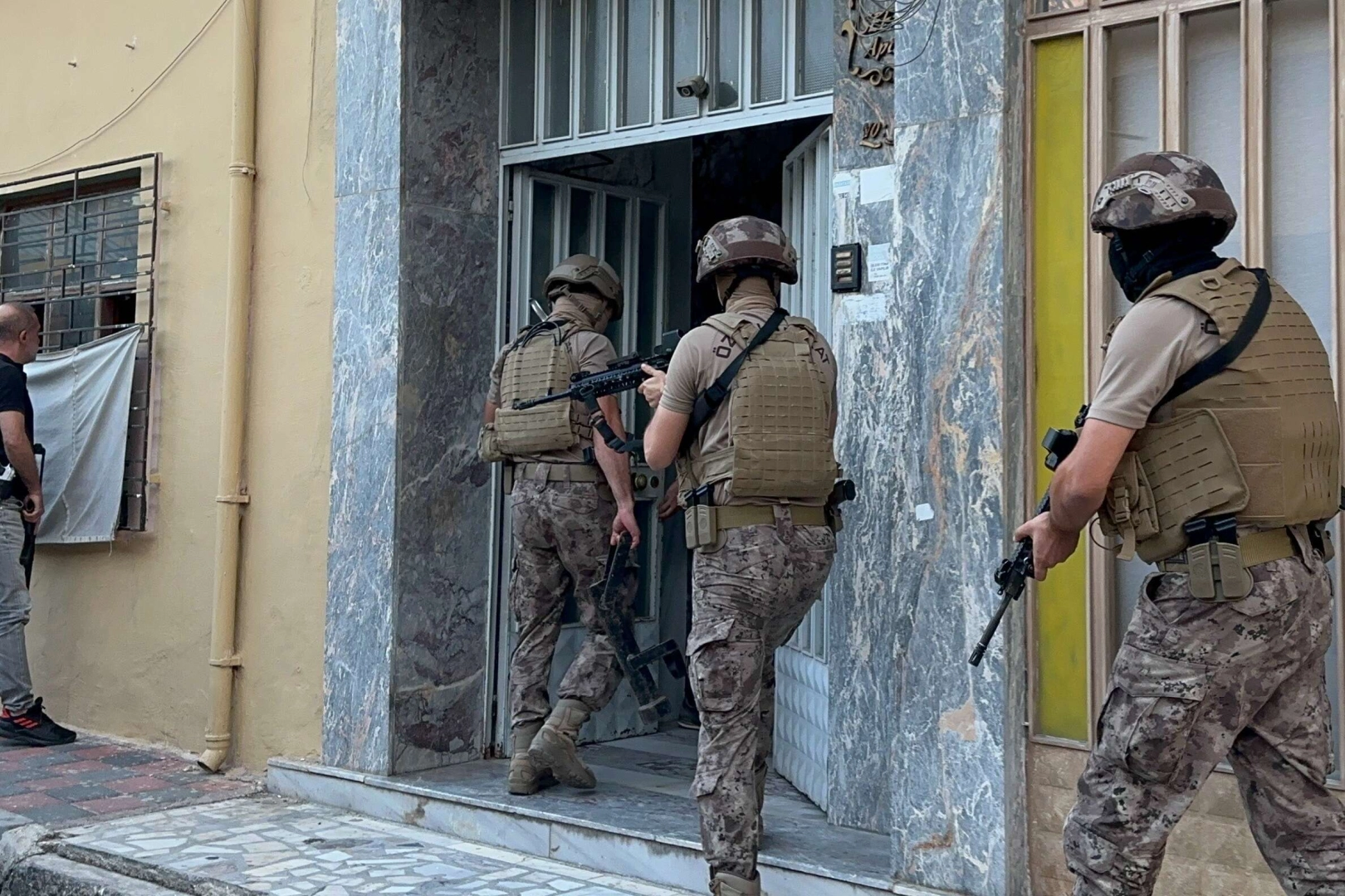 Bugün sabah operasyon için düğmeye basan ekipler, özel harekat ve dron desteğiyle belirlenen adreslere şafak operasyonu düzenledi. Koçbaşlarıyla kapılar kırılarak adreslere girilirken, operasyon bölgelerinde yoğun güvenlik önlemi alındı. Polislerin adreslerdeki aramaları devam ediyor.