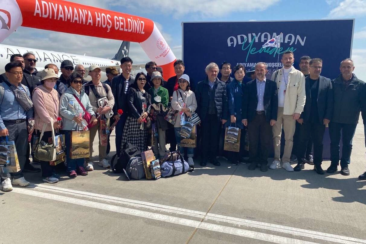Kahramanmaraş’ta 6 Şubatta meydana gelen 7.7 ve 7.6 büyüklüğündeki depremde Adıyaman’da, binlerce bina yıkılmış ve binlerce vatandaş ise enkaz altında kalarak hayatını kaybetmişti. Meydana gelen deprem sonrası Güney Kore’den ilk olarak 25 kişilik turist kafilesi uçakla Adıyaman Havalimanına geldi. Kültür ve Turizm Bakan Yardımcısı Ahmet Misbah Demircan’ın da içerisinde bulunduğu uçaktan inen turistler havalimanında çiçeklerle karşılandı. Turistlere aynı zamanda Adıyaman’ın tarihi alanlarının figürleri de hediye edildi.