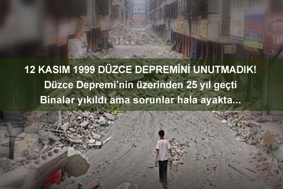 12 Kasım 1999 tarihinde, Düzce’de meydana gelen, Düzce, Bolu ve Sakarya’da 850 vatandaşımızın hayatını kaybetmesine, binlerce kişinin yaralanmasına ve evsiz kalmasına yol açan 7,2 büyüklüğündeki depremin üzerinden tam çeyrek asır geçti. Öncelikle bu depremde yaşamını yitiren vatandaşlarımızı saygıyla anıyoruz. Bu büyük felaket, yalnızca Düzce’yi değil, tüm Türkiye’yi derinden sarsmış ve ülkemizin deprem gerçeğini bir kez daha acı bir biçimde gözler önüne sermiştir. 17 Ağustos 1999 Gölcük-Kocaeli Merkezli Depremin ardından yaklaşık üç ay sonra gerçekleşen bu olay, bizlere bir kez daha depremin ne kadar yakın ne kadar kaçınılmaz ve ne kadar yıkıcı olduğunu hatırlatmıştır.