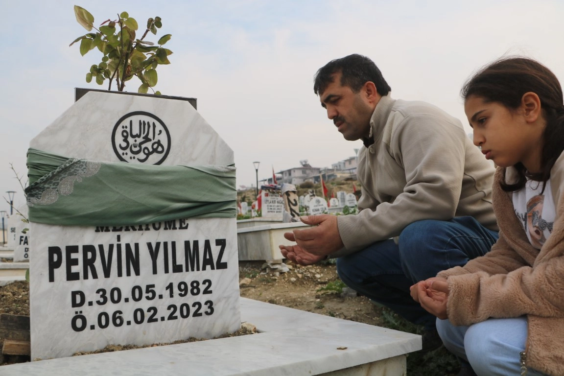 Asrın felaketinde eşi, 2 oğlu ve kardeşi vefat eden Mehmet Yılmaz, hayatta kalan kızı Elmas’la birlikte ailesinin mezarlarını ziyaret etti. 2023 yılını unutmayacağını dile getiren Yılmaz, “Ben; eşimi, 2 oğlumu, annem, kardeşim, abim ve çok sevdiğim komşumu depremde kaybettim. Birinci derece olarak 5 yakınımı depremde kaybettim. Ailemden geriye kızım ve ben kaldık. Babam ve kardeşlerimde sağ salim hayattalar. Ben depremde vefat eden ailemi ziyarete geldim. Onlarda olmuş olsa daha mutlu olacaktı, demek ki kaderleri böyleymiş. 2023’ü hiç unutmayacağız. Unutulmayacak. İçimizde yaşıyoruz her şeyi, kalbimize gömdük” ifadelerini kullandı.