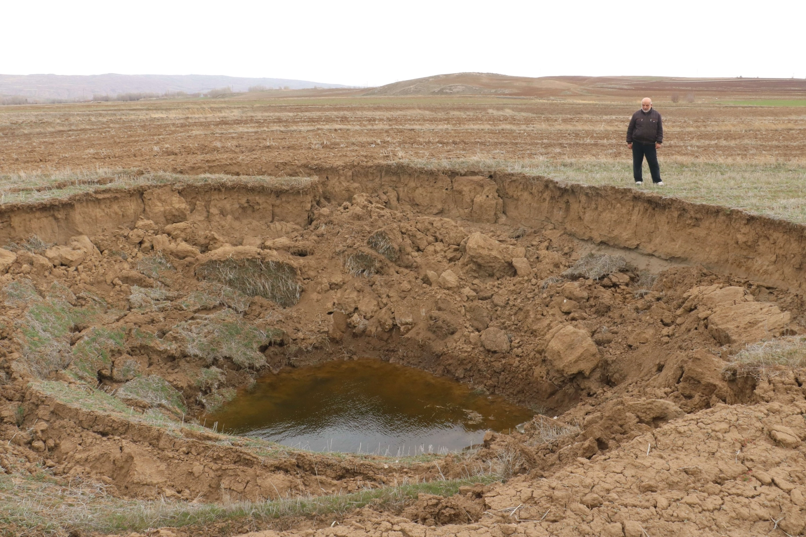 Sivas'ın Zara ilçesi Çanova köyünde deprem sonrası oluşan 15 metre çapındaki obruk köylüleri korkuttu.