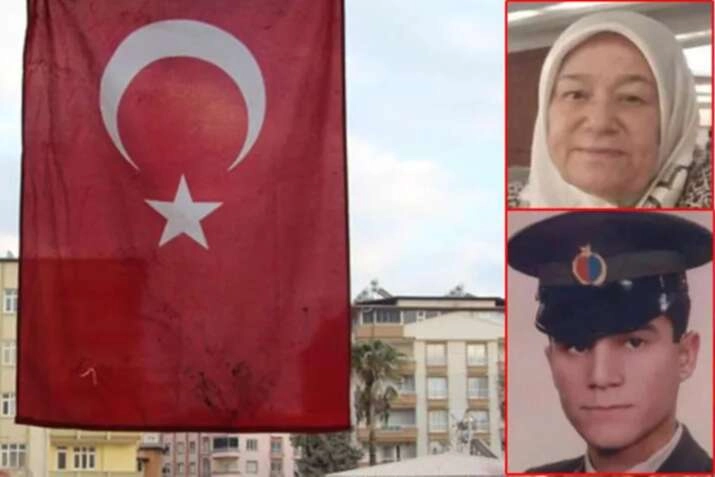 Öte yandan yıkılan apartmanda şehidin ve şehit annesinin eşyaları da hurdaya dönerken, şehit ve annesinden ise geriye Türk Bayrağı kaldı. Enkazdan çıkarılan Türk Bayrağı ise enkazın yanında bulunan bir iş yerinin girişine asıldı.