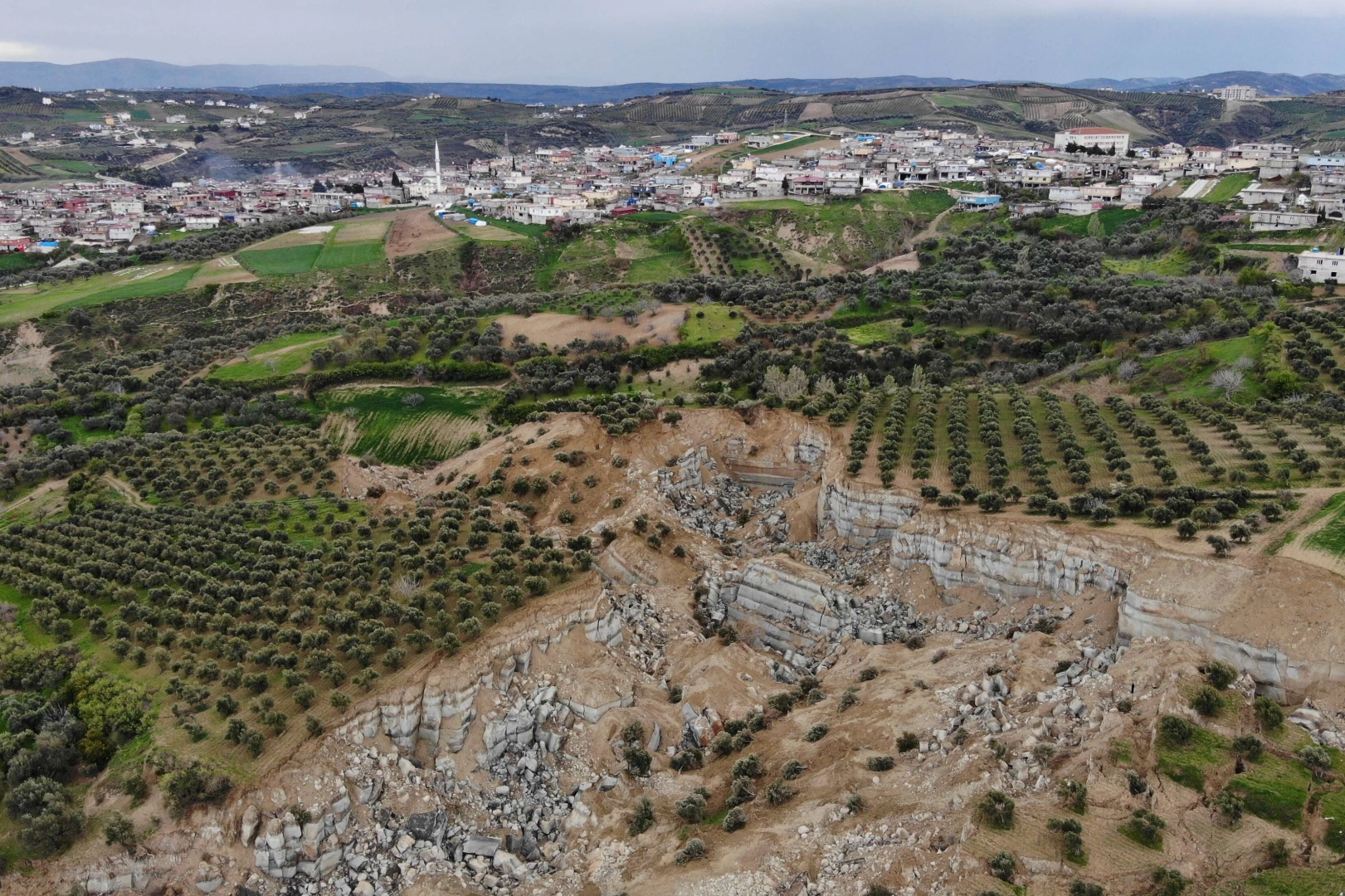 6 Şubat tarihindeki 2 büyük deprem, Hatay’ın merkezi kadar ilçelerde de etkili oldu. Altınözü ilçesinde Tepehan Mahallesi'nde deprem sonrası zeytin bahçesinde kanyonu andıran dev bir yarık oluştu. Yaklaşık 200 metre genişliği, 400 metre uzunluğu ve 50 metre derinliği bulunan yarığın, zeytin bahçesini ikiye böldüğü ve hattın vadi içine doğru gittiği görüldü. Vadinin alt noktasında ise köylülerin kullandığı yolun yaklaşık 50 metre yükseldiği, yolun ortadan kaybolduğu gözlemlendi. Yaklaşık 5 bin kişinin yaşadığı mahallede 50 yakın ev çöktü, yapıların yüzde 85’ine yakını kullanılamaz hale geldi. Ağır hasar ve dev yarık nedeniyle son dönemde mahallenin başka bir noktaya taşınması gündeme geldi. Mahalle halkı yakın bir mevki olması halinde taşınacaklarını belirtti.