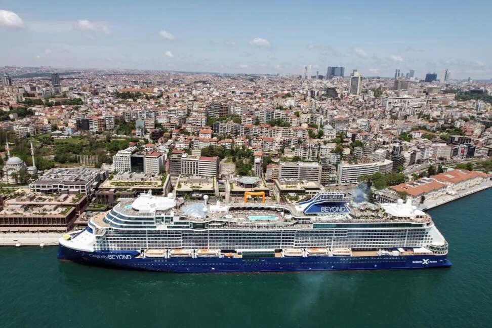Kruvaziyer gemisi Celebrity Beyond ve 210 metre uzunluğundaki Silver Spirit, İstanbul'un eşsiz manzarası eşliğinde Galataport'a demir attı. 3 bin 600 yolcu kapasiteli Celebrity Beyond, Galataport Limanı’nda vatandaşların ilgi odağı oldu. Vatandaşlar dev geminin fotoğraflarını çekti. Celebrity Beyond bugün limandan ayrılarak Kuşadası'na doğru hareket edecek.