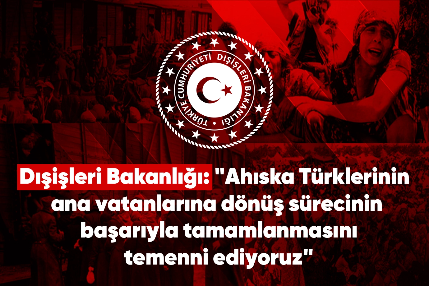 Dışişleri Bakanlığı, Ahıska Türklerinin ana vatanlarından sürgüne gönderilmesinin 81. yıl dönümüne ilişkin yayımladığı açıklamada, "sürgünde hayatını kaybeden kardeşlerimizi bir kez daha saygı ve rahmetle anıyoruz. Ahıska Türklerinin ana vatanlarına dönüş sürecinin başarıyla tamamlanmasını temenni ediyoruz" dedi. Ahıska Türklerinin ana vatanları Ahıska’dan Sovyetler Birliği döneminde sürgüne gönderilmesinin 81. yıl dönümü dolayısıyla Dışişleri Bakanlığı yazılı açıklamada bulundu. Sürgünde birçok Ahıska Türkünün hayatını kaybettiğini ve hayatta kalanların da geleneklerini koruyarak gelecek nesillere aktarmayı başardıklarının belirtildiği yazılı açıklamada, Bakanlık şu ifadelere yer verdi: "Yaklaşık yüz bin Ahıska Türkü, 14 Kasım 1944 tarihinde, Gürcistan’ın Ahıska bölgesinde asırlarca yaşadıkları ana vatanlarından koparılarak Sovyetler Birliği’nin uzak bölgelerine sürgün edilmişlerdir. Sürgün sırasında binlerce Ahıska Türkü yaşamını yitirmiş, hayatta kalanlar ise tüm zorluklara rağmen kimliklerini, dillerini, dinlerini ve geleneklerini koruyarak gelecek nesillere aktarmayı başarmışlardır. Sürgünün 81. yıl dönümünde bu büyük acıyı hüzünle hatırlıyor, sürgünde hayatını kaybeden kardeşlerimizi bir kez daha saygı ve rahmetle anıyoruz. Ahıska Türklerinin ana vatanlarına dönüş sürecinin başarıyla tamamlanmasını temenni ediyoruz."
