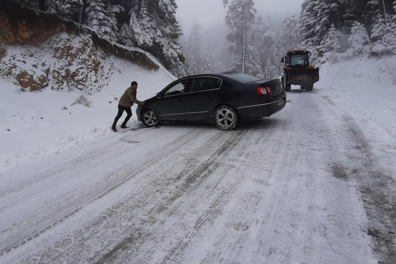 Kar kalınlığının 20 santimetreye ulaştığı milli parkı ziyaret etmek isteyen ancak kış lastiği takmayan vatandaşlar yolda kaldı. Bolu’da 2023 yılı boyunca 571 bin 162 yerli ve yabancı turisti ağırlayan doğa harikası Abant Gölü Milli Parkı'nda son kar yağışının ardından kartpostallık görüntüler ortaya çıktı.