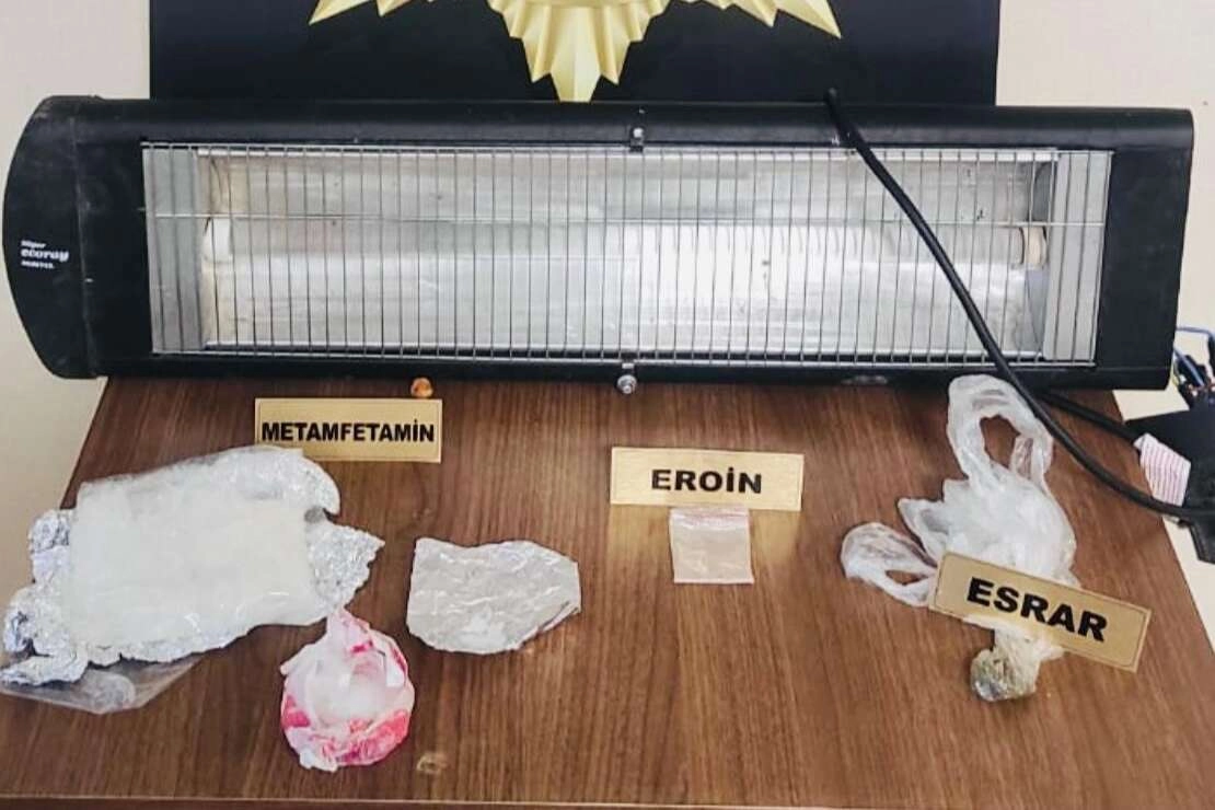Araçta yapılan aramada elektrikli ısıtıcı içine gizlenmiş 3 paket halinde toplam 97,53 gram metamfetamin, 2,55 gram eroin ve 1,33 gram esrar ele geçirildi. Olayla ilgili Y.C. gözaltına alındı. Bugün Samsun Adliyesine sevk edilen Y.C., çıkarıldığı mahkemece tutuklandı.