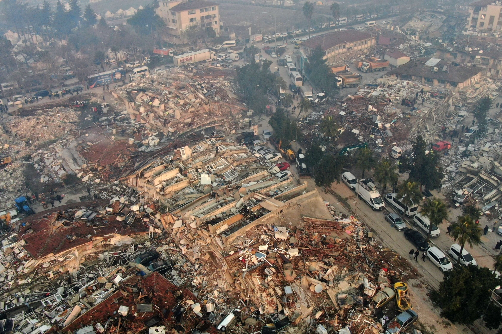 Kahramanmaraş merkezli, Türkiye'nin 10 ilinde ciddi şekilde hissedilen depremde en çok hasarı alan şehirlerden biri olan Hatay'da, yaşanan yıkım dronla havadan görüntülendi