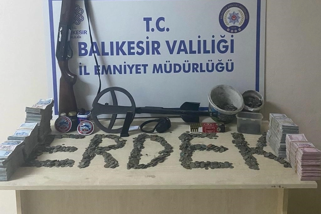 Erdek ilçesi Atatürk mahallesinde bir ikamette tarihi sikkeler olduğu bilgisi alınması üzerine İlçe Emniyet Müdürlüğü ekipleri, şahsın ikametinde ve kendisinin kullandığı komşusuna ait ikamette yürüttükleri operasyonda toplam 3 bin 882 adet sikke, 1 adet el dedektörü, dedektöre ait kulaklık, 2 adet amonyak çözelti ve telli fırçalar, 1 adet av tüfeği, 26 adet tüfek kartuşu, 87 adet fişek, tarihi eser satışından elde edildiği değerlendirilen 510 bin Türk Lirası nakit para ele geçirildi. Konu ile ilgili olarak 3 şüpheli şahıs yakalanıp haklarında adli işlemler başlatıldı.