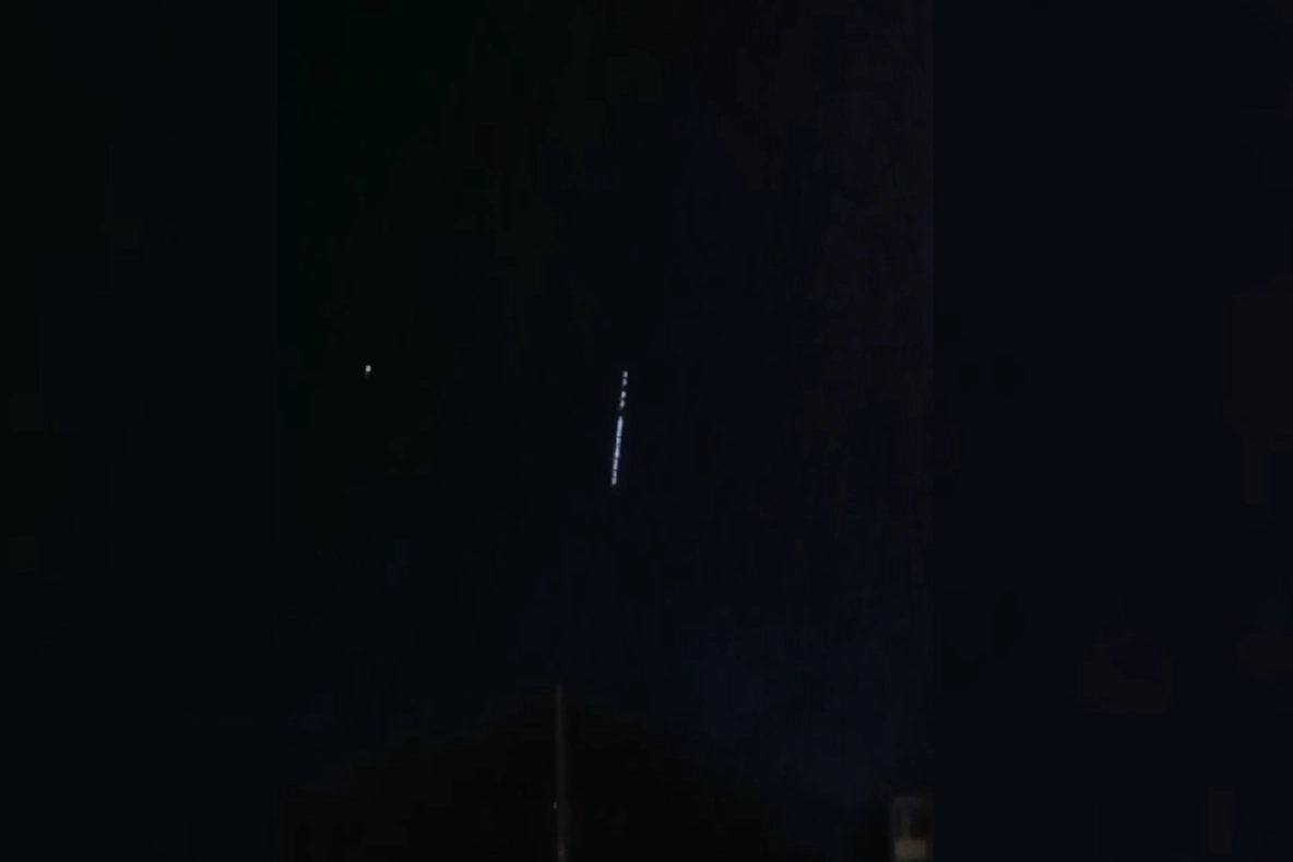 Sıralı bir şekilde hareket ettiği görülen ışık kümesinin Starlink Uydu Ağı Projesi’ne ait olduğu öğrenildi.