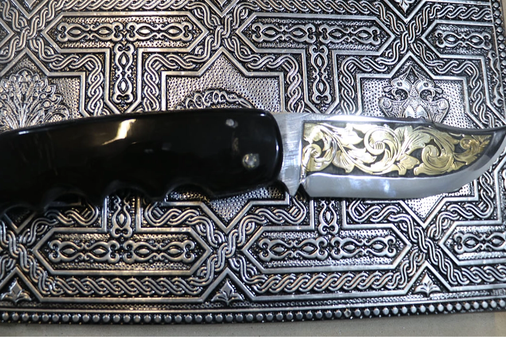 Daha önceden yapılmamış bir bıçak ürettiklerini söyleyen Emre Göçeri, "Türkiye’de daha önceden yapılmamış olan manda boynuzundan bir bıçak yaptık. Üzerinde gravür işlemeli ve 24 ayar altın kaplamalı bir ürün yaptık. Bu bıçağın en önemli yanı manda boynuzunun arasında hiçbir kalıp ve mekanizma sistemi koymadan 30 santimetrelik bir ürün çıkarttık. Manda boynuzu, koç boynuzundan kat kat sağlam bir boynuzdur. Bu da bize bir mirastır çünkü ülkemizde manda sayısı çok az sayıdadır. Bu ürün sadece dişi mandalardan çıkmaktadır. Biz bu ürünleri daha farklı gravürlerde yapmayı düşünüyoruz. İnşallah daha güzel şeyler yapacağız. Bu bıçak günlük yaşantıda kullanılacak bir bıçak değildir. Koleksiyoncu insanların aldığı bir bıçaktır. Şu anda 60 bin TL’den bıçağımızı satışa sunuyoruz. Manda azlığından dolayı da fiyatların artacağını düşünüyorum. Diğer bıçaklarda seri üretim yapıyoruz ama bu bıçakta bu mümkün olmuyor. Bu bıçağı ürettiğimiz bölümümüz bile ayrı bir alandadır. Bu bıçağa yurt dışından bile talepler geliyor ve kişiye özel isimler yazıyoruz" dedi.
