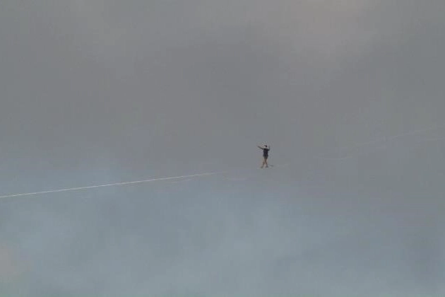 Estonyalı akrobat Jaan Roose, İstanbul Boğazı'nda 15 Temmuz Şehitler Köprüsü üzerinde Asya'dan Avrupa'ya halat üzerinde yürüyerek geçerken vatandaşlar o anları ilgiyle izledi.