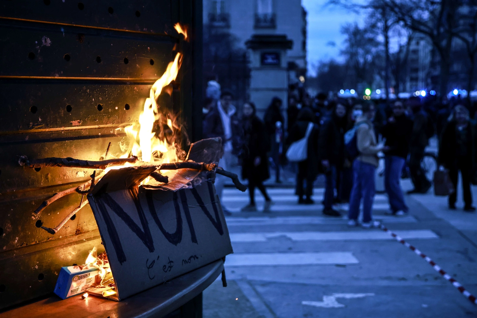Gensorunun reddedilmesinin ardından göstericiler başkent Paris ve Lyon'da yeniden sokaklara döküldü. Protestocular, kurdukları bariyerleri ve devirdikleri konteynerleri ateşe verdi. Polisin göstericilere göz yaşartıcı gaz ile müdahale ettiği protestolarda alev alan konteynerler itfaiye ekiplerinin çalışmaları sonucu söndürüldü. Polis tarafından yapılan açıklamada, Paris'teki gösterilerde 240'ı kundaklama nedeniyle olmak üzere toplam 243 kişi gözaltına alındı.