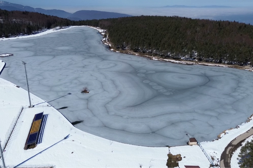 Soğuk hava nedeniyle tamamen donan gölet, dron ile havadan da görüntülendi. Bölgeye giden Duygu Tuğba Güner, "Şehir merkezinde sıcaklık 20 dereceye kadar ulaşırken, yüksek kesimlerde sıfırın altına düşmesi sonrasında Topuk Yaylası'nda bulunan göl donmuş" ifadelerini kullandı.