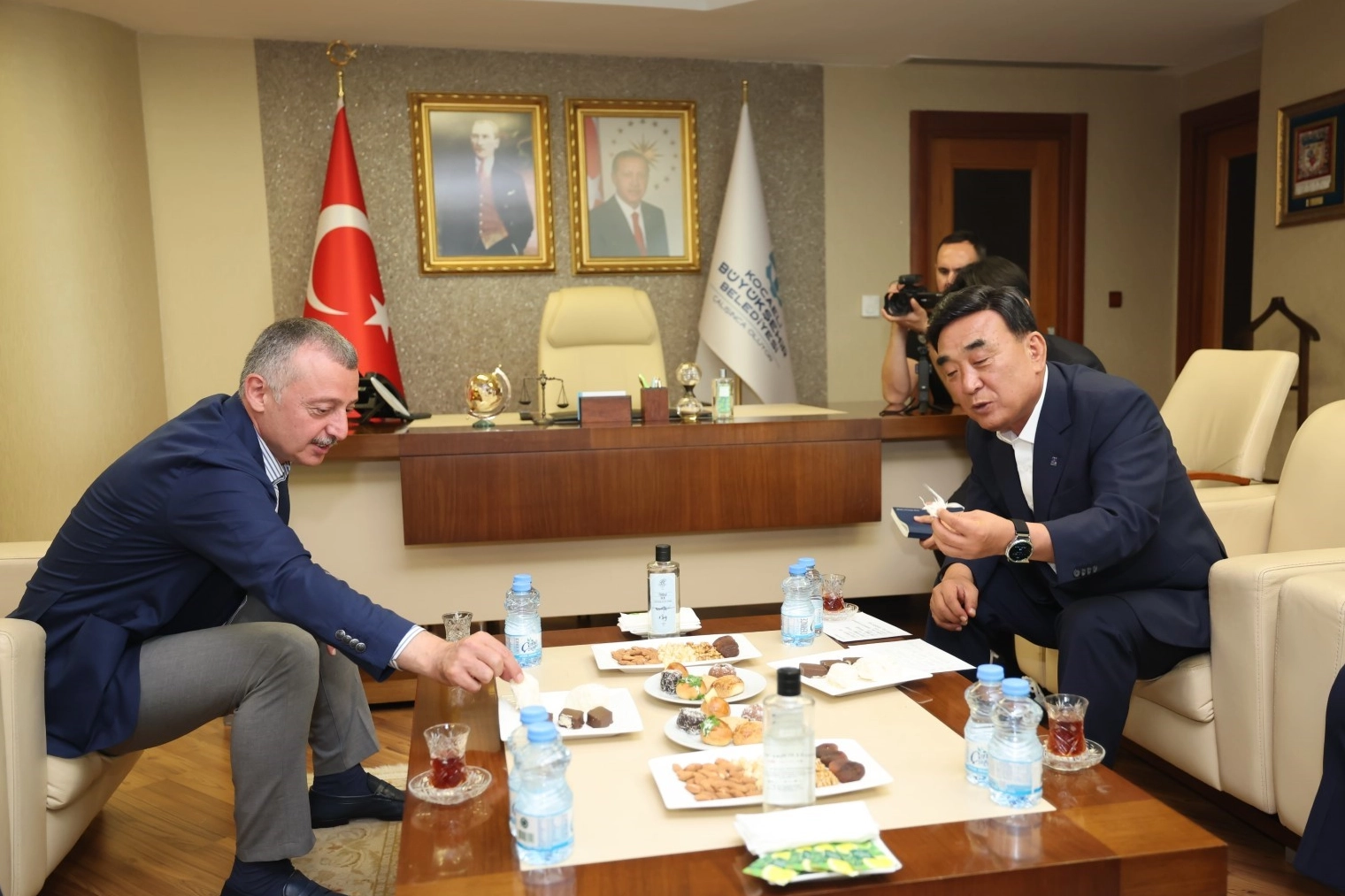 Kocaeli Büyükşehir Belediye Başkanı Tahir Büyükakın, Güney Kore’nin endüstri merkezi Ulsan’ın Büyükşehir Belediye Başkanı Kim Doo-gyeom’u Kocaeli’de ağırladı. Ziyaret, iki şehir arasındaki ekonomik ve kültürel bağların güçlendirilmesi, yatırım ve ticaret hacminin artırılması adına önemli görüşmelere sahne oldu. Kocaeli Büyükşehir Belediyesi Genel Sekreteri Hayri Baraçlı’nın da katıldığı görüşmede, şehirlerarası işbirliğinin yeni bir boyuta taşınması konusunda mutabakata varıldı. Konuk başkan Kim Doo-gyeom, kendisine ikram edilen çay ve pişmaniyeyi çok sevdiğini ifade ederek, heyetiyle birlikte bol bol çay içti, pişmaniye yedi. Kocaeli temaslarında Sekapark’ı da ziyaret eden konuk başkan, kentin en önemli yeşil alanına tam not verdi. Başkan Büyükakın, Türkiye ve Güney Kore arasındaki tarihsel bağlara da özel bir vurgu yaptı. Kore Savaşı sırasında Türkiye'nin Güney Kore’ye verdiği desteğin unutulmadığını belirten Başkan, iki ülkenin kardeş şehirleri olan Kocaeli ve Ulsan arasındaki ilişkilerin bu dostluğun bir yansıması olduğunu söyledi. Gelecekteki işbirliği potansiyelleri ile her iki şehrin ekonomik ve kültürel açıdan daha da yakınlaşacağına inandığını ifade etti. Başkan Büyükakın, Kocaeli ve Ulsan arasındaki dostluk ve işbirliğinin uzun yıllara dayandığını hatırlatarak, “Kore bizim gerçekten dost ülkemiz. Kore Savaş’'nda Türk askerinin gösterdiği kahramanlık, iki ülkenin ilişkilerini derinleştiren bir olaydı. Hâlâ Kocaeli’de yaşayan 11 Kore gazimiz var. Bu bağ, sadece geçmişte kalmadı; Güney Kore ile olan kardeşlik ilişkimiz, 2002 Dünya Kupası'ndan bugüne kadar güçlü bir şekilde devam ediyor. O dönemde düzenlenen futbol maçları vesilesiyle Kocaeli’den Güney Kore’ye giden heyetler oldu, oradan da misafirler ağırladık. Bu kardeşlik, geçmişten gelen ve halen süregelen güçlü bir bağdır" dedi. PANDEMİ VE İKLİM KRİZİNE KARŞI ORTAK MÜCADELE Başkan Büyükakın, dünya genelinde yaşanan pandemi ve küresel iklim krizine dikkat çekerek, bu sorunların ancak uluslararası işbirliği ile çözülebileceğini vurgulayarak, “Pandemiler ve küresel iklim krizi, tüm insanlığı tehdit eden iki büyük risk olarak karşımızda duruyor. Bu tür problemleri tek bir ülkenin veya bir belediye başkanının tek başına çözmesi mümkün değildir. Dünyanın ve şehirlerin bu tehditlere karşı beraber çalışması gerekiyor. Öncelikli olarak pandemiler ve iklim krizi gibi küresel sorunlara karşı birlikte aksiyon almalı, nasıl daha iyi işbirlikleri geliştirebiliriz bunları konuşmalıyız" diye konuştu. Kocaeli ve Ulsan heyetleri, şehirdeki çevre projelerini ve turizm alanlarını da inceleme fırsatı buldu. Kocaeli’nin en önemli yeşil alanlarından biri olan Sekapark’ı ziyaret eden heyet, Başkan Büyükakın’dan Avrupa’nın en kapsamlı çevre projelerinden biri olan İzmit Körfezi Dip Çamuru Temizlik Projesi hakkında bilgi aldı. Başkan, bu projenin Kocaeli'nin çevresel sürdürülebilirliğine verdiği önemi gösterdiğini belirtti. Aynı zamanda, Kocaeli’nin turizm potansiyelinin arttırılması konusunda önemli adımlar atıldığını ifade eden Büyükakın, iki şehir arasındaki kültürel bağların gelişmesi için bu tür ziyaretlerin devam edeceğini vurguladı. KENTSEL DÖNÜŞÜM VE DEPREME HAZIRLIK Ziyaret kapsamında, Kocaeli’nin en öncelikli projelerinden biri olan kentsel dönüşüm ve depreme hazırlık çalışmaları da gündeme geldi. Başkan Büyükakın, Kocaeli’nin deprem gerçeği ile yüzleşmiş bir şehir olduğunu ve depreme karşı alınacak tedbirlerin her zaman ön planda tutulduğunu belirtti. Bu çerçevede, kentsel dönüşüm projeleri ve depreme dayanıklı yapılaşma konusunda Kocaeli Büyükşehir Belediyesi olarak ciddi adımlar attığını vurguladı. Başkan Büyükakın, özellikle depremle mücadelede teknolojik altyapının ve inovasyonun önemine değindi. Başkan Büyükakın, bu önemli ziyaretin Kocaeli ve Ulsan arasındaki kardeş şehir ilişkisini daha da güçlendirdiğini belirterek, “Ulsan ile olan dostluğumuz, geçmişten gelen güçlü bağlara dayanıyor. Ancak bu dostluğu daha da ileriye taşıyarak, pandemiden küresel iklim krizine kadar pek çok küresel soruna birlikte çözüm bulmak zorundayız. Ekonomik işbirliğimizi artırarak hem şehirlerimizde hem de ülkelerimizde daha fazla yatırım ve istihdam yaratmalıyız. Ayrıca kültürel işbirliklerini de ihmal etmeden, halklarımızın birbirini daha yakından tanımasına katkı sağlamalıyız. Kocaeli olarak bu işbirliğinde her türlü desteğe hazırız" ifadelerini kullandı. Ulsan’ın Büyükşehir Belediye Başkanı Kim Doo-gyeom ise, misafirperverliklerinden dolayı Başkan Büyükakın ve heyetine teşekkür etti.