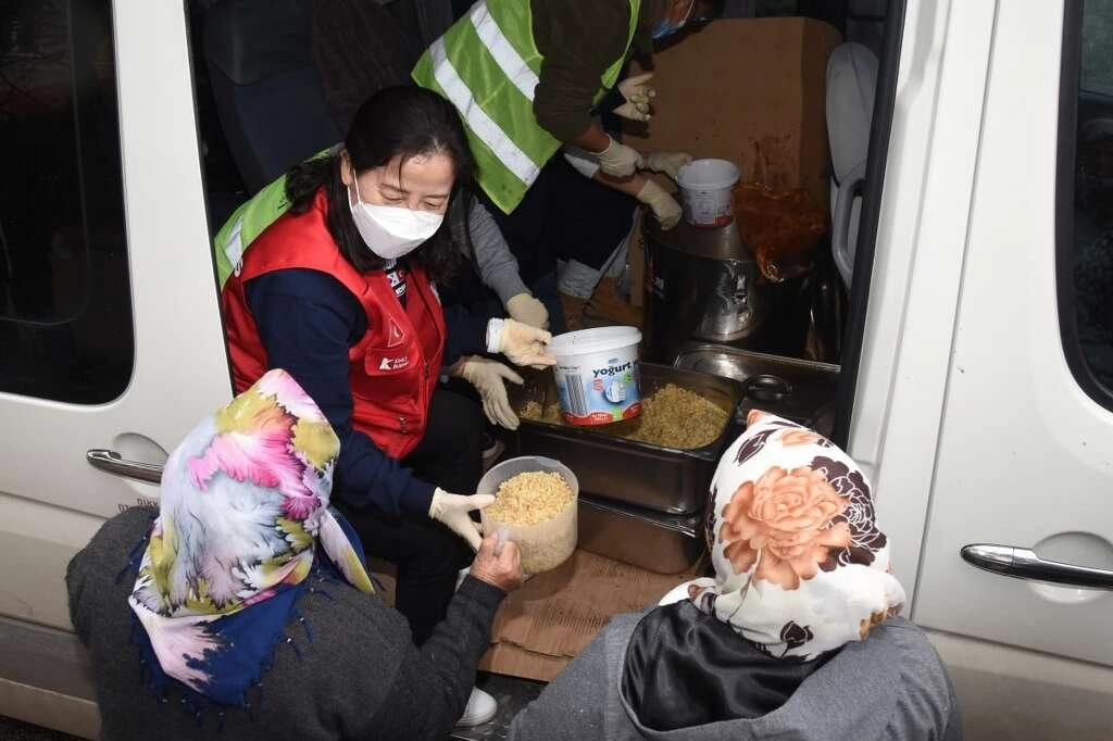 Osmaniye Belediyesi koordinasyonunda deprem bölgesine desteğe gelen Güney Kore ve Türkiye Dostluk, Kültür ve Dayanışma Derneği gönüllüleri, Osmaniye’de çadır kurulumu ve yemek dağıtımı faaliyetlerine katıldılar.