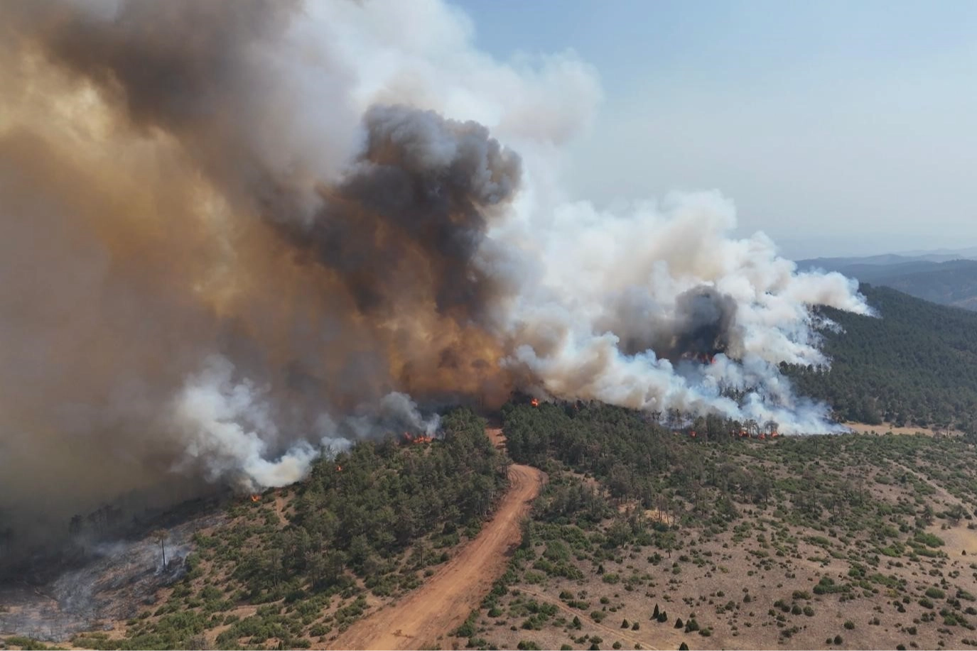 Dron ile çekilen görüntüler, yangının ulaştığı boyutları gözler önüne sererken, alevlerin ormanlık alanı hızla sardığı görülüyor. Ekipler, yangını kontrol altına almak için yoğunçabaharcıyor.