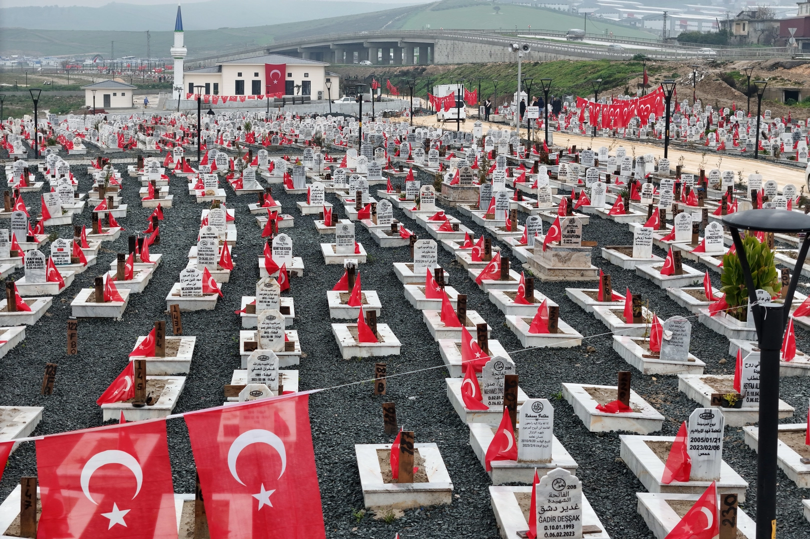 Türkiye’de 11 ilde yıkıma yol açan 6 Şubat depremlerinin üzerinden 1 yıl geçti. Depremde ölenlerin defnedildiği Reyhanlı yolu üzerindeki Deprem Mezarlığı Türk Bayrakları ile donatıldı. Her mezarlığın başına bir Türk bayrağı dikildi. Depremde hayatlarını kaybeden çocukların mezarları başına bırakılan oyuncaklar dikkat çekti. Depremzede yakıları mezar ziyaretinde dualar okuyup gözyaşları döktü. Öte yandan depremde hayatlarını kaybederler için hatim indirildiği duyuruldu. Türk bayrakları ile dolatılan mezarlık havadan da görüntülendi.