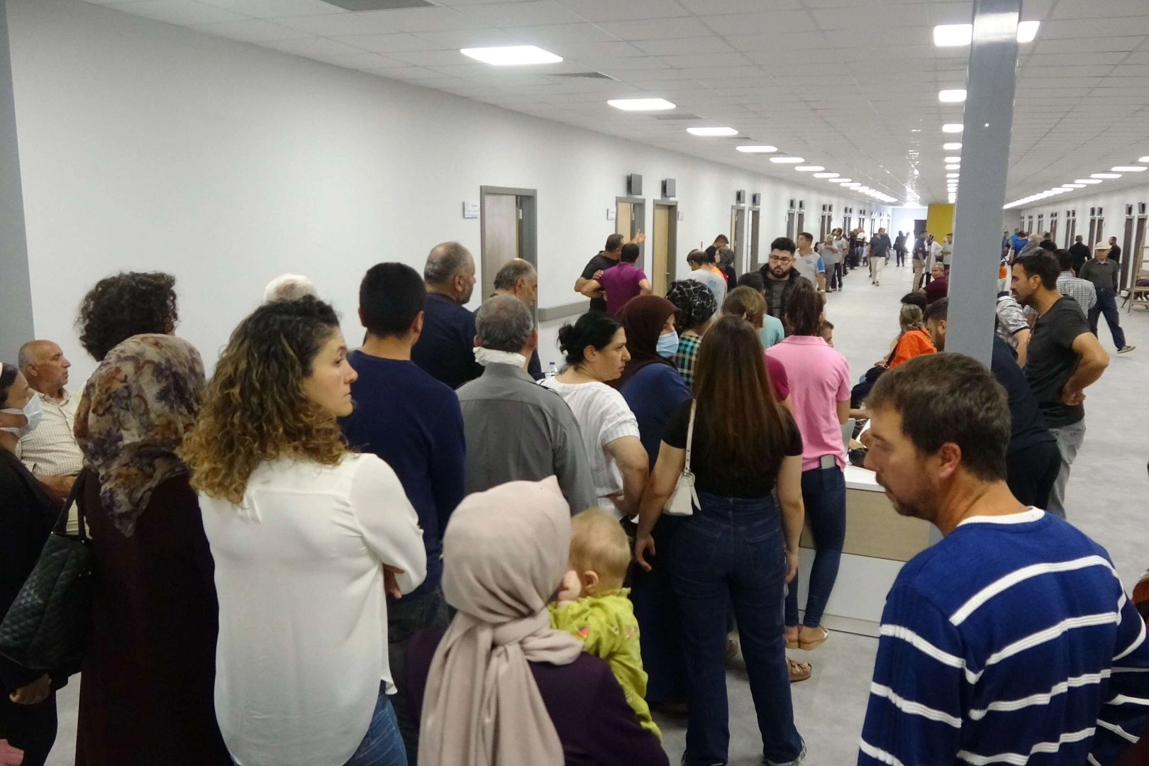 Vatandaşların ağırlıklı olarak çocuk bölümünü tercih ettiği görüldü. Hastaları girişte, "İnsanlık merhamet üzerine kuruludur" yazısı ile karşılayan hastane, buradaki danışma masasından ilgili branşlara yönlendirilmesi sağlanıyor.