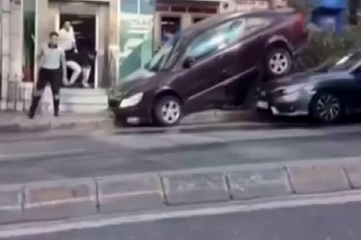 Edinilen bilgiye göre bir sürücü, park halindeki aracının bulunduğu yerden çıkarmak için sürücü koltuğuna oturdu. Bir anda gaza yüklenen sürücü, arkasında park halinde bulunan bir başka aracın üzerine çıktı. Aracın üzerine çıkan sürücü, o an yaşadığı panikle fren yerine gaza basmaya devam edince bu sefer kaldırımda bulunan bir ağacı devirdi.