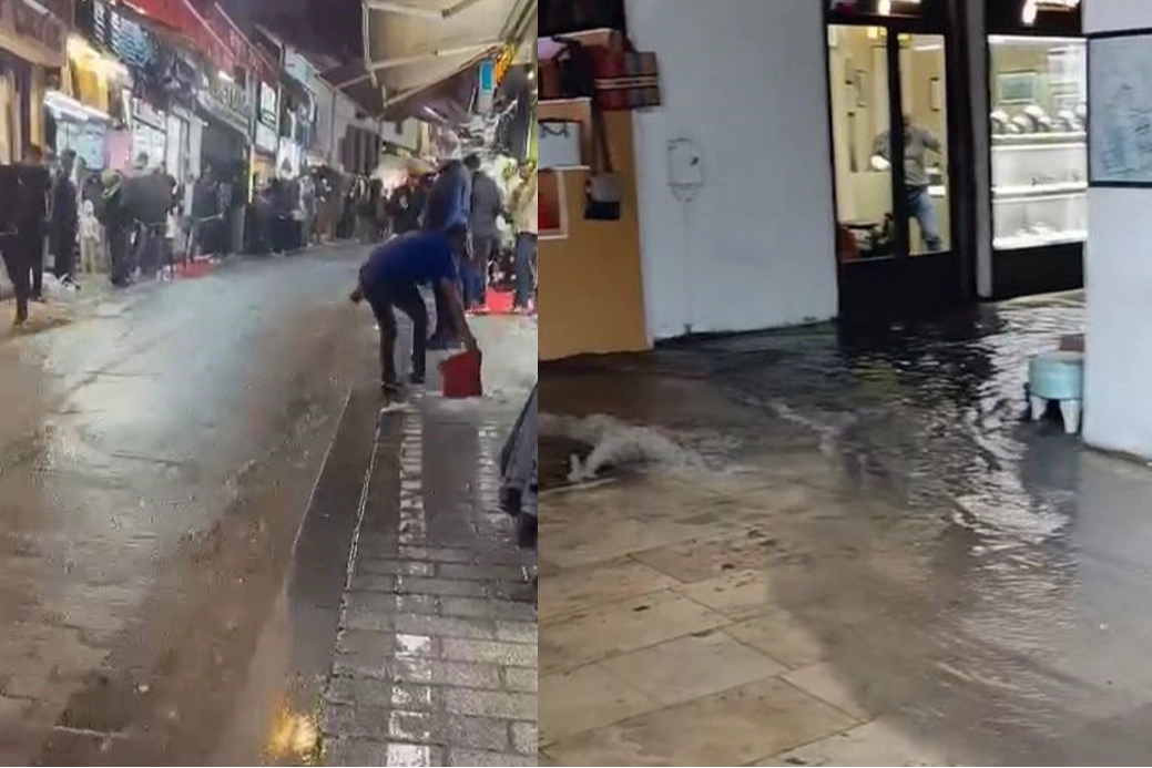 Meteroloji Genel Müdürlüğü’nün uyarılarının ardından yağmur İstanbul’da etkili oldu. Yağmur nedeniyle Kapalıçarşı, Kumkapı, Beyazıt’ta kısa süreli su baskınları yaşandı. Vatandaşlar ve esnaf zor anlar yaşadı. Yaşanan o anlar cep telefonu kamerasına yansıdı.