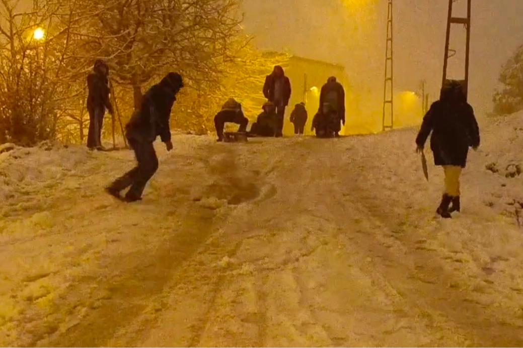 Soğuk hava dalgasıyla birlikte gelen karla Pendik’in yüksek kesimlerinden Ertuğrul Gazi Mahallesi tamamen beyaza büründü. Kar yağışını fırsat bilen mahalle sakinleri ve çocuklar soluğu sokaklarda aldı. Mahallenin dik yokuşları adeta kayak alanına dönerken, yarıyıl tatilinde olan çocuklar yanlarında getirdikleri kızaklar, poşetler ve kendi imkanlarıyla yaptıkları araçlarla kayarak karın tadını çıkardı. Çocuklar, kartopu savaşı yapmayı da ihmal etmedi.