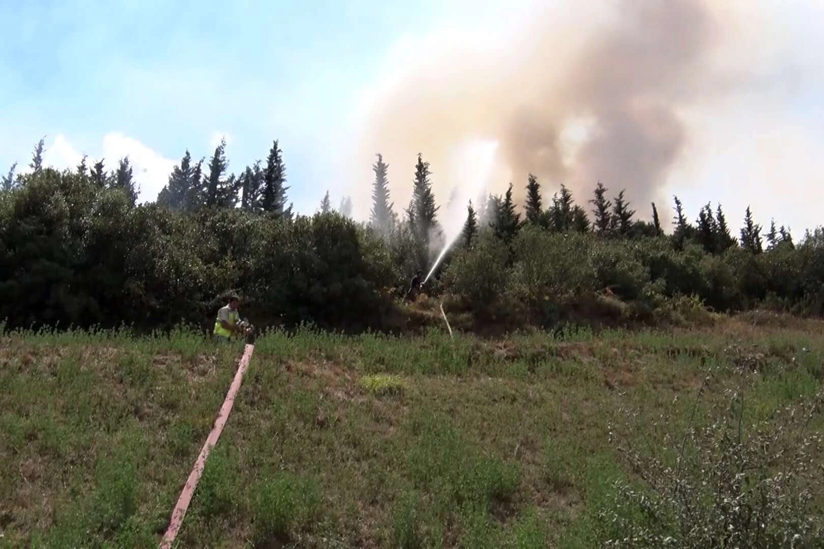 Soğutma çalışmaları devam ederken, yangının neden çıktığının belirlenmesi için çalışma başlatıldı. Öte yandan ağaçlık alandaki yangını söndürme çalışmaları havadan görüntülendi.