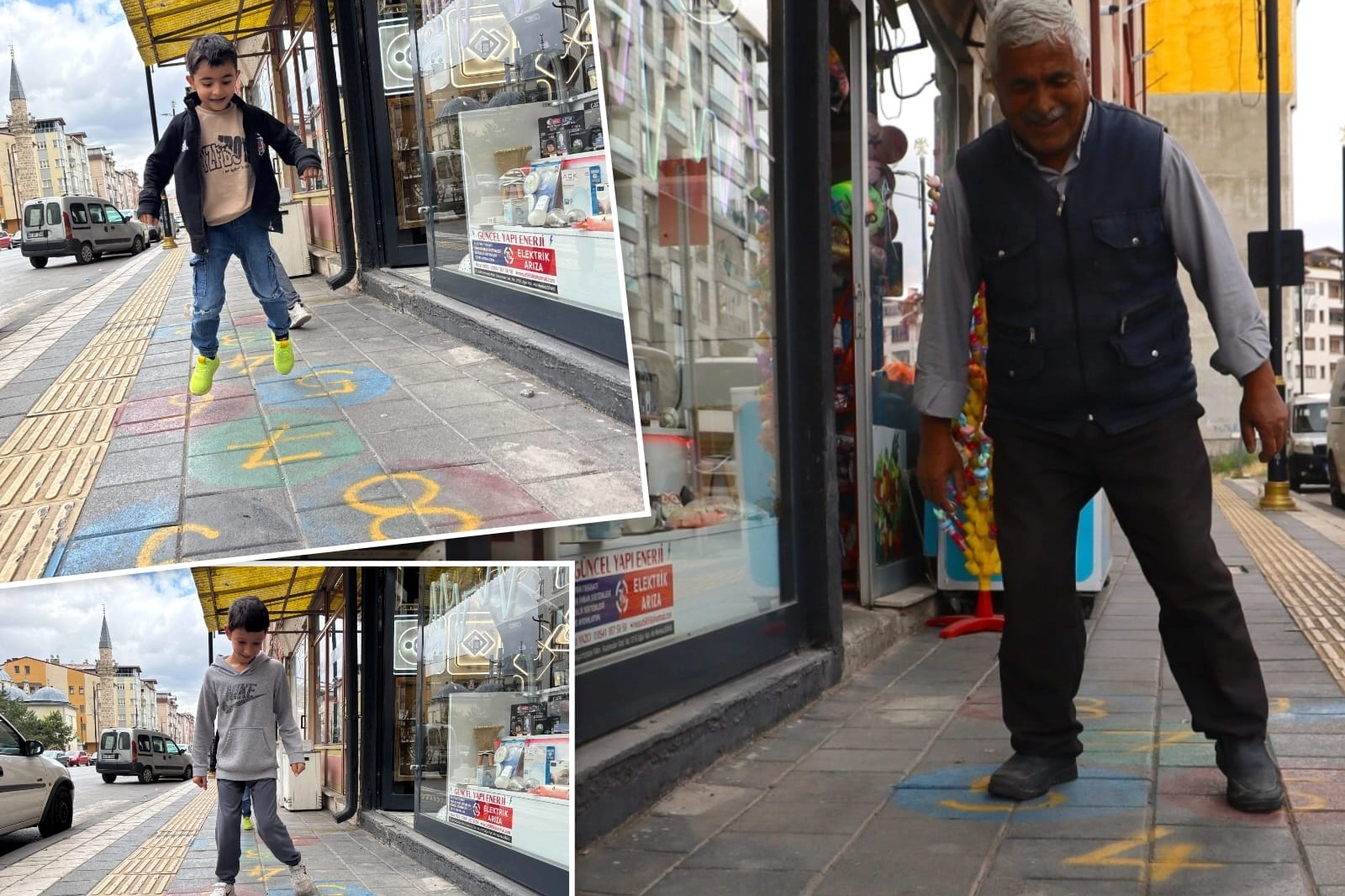 Sivas'ta 12 yıldır esnaflık yapan Mesut Yazıcı, iş yerinin önüne çizdiği seksek oyunu ile caddeden geçen çocuklara, gençlere ve yaşlılara eğlenceli bir alan sundu. Yoldan geçen çocuklar seksek oyununu oynayarak keyifli anlar yaşarken, yetişkinler ise çocukluk yıllarını hatırlayarak oyuna katılmayı ihmal etmedi. İşletmenin önünden geçen çocuk, genç, yaşlı birçok kişinin seksek oynaması güvenlik kamerasına yansıdı. Teknolojik cihazlara bağımlı büyüyen çocuklara nostaljik bir mutluluk yaşatmak için iş yerinin önüne seksek oyunu çizdiğini ifade eden Yazıcı'nın başlattığı bu etkinlik, çevre esnaftan da destek gördü. "Çocuklar mutlu olsun diye yaptım" İş yerinin önüne çizdiği seksek oyunuyla hem çocukları hem de mahalle sakinlerini sevindiren Mesut Yazıcı, "Çocuklar mutlu olsun diye yaptım. Çocuklar da zıplayıp oynayarak mutlu oluyorlar ve bu durum hoşumuza gidiyor. Şu an ki çocuklar, hep tablet ve telefonla uğraştıkları için biz de değişiklik olsun diye karar aldık. Esnaf ve komşularımızla beraber seksek oyununu yaptık. İnsanlar mutlu oluyorlar, onlar mutlu olunca biz de mutlu oluyoruz. Çocukluğumuz da top, saklambaç ve değişik oyunlar vardı. Şu anki çocukların monoton bir yaşamı var. Biz de farklılık olsun diye böyle bir şeye karar verdik yaptık. Çocuklar ve insanlar mutlu ise biz de mutluyuz" şeklinde konuştu. "Asık yüzleri bir anda gülümsemeye dönüşüyor" İnsanların artık sokaklarda asık suratlı gezdiğini söyleyen Komşu esnaf İbrahim Yıldırım, "Arkadaşlarımızın yaptığı seksek oyunu fikrini esnaf olarak destekliyoruz. Çocukların buradaki seksek oyununu oynayarak sevinmesi ve güler yüzlü olması bizi mutlu ediyor. İnsanların ekonomik durum ve diğer psikolojik olaylardan dolayı yüzleri çok asık oluyor. Seksek oyunu oynadıktan sonra asık yüzleri bir anda gülümsemeye dönüşüyor. Biz de bunları gördüğümüz zaman esnaf olarak mutlu oluyoruz" diye konuştu. "Gözümün önünde çocukluğum canlandı" Seksek oyununu görünce duygulanan Muhammed Berat Şimşek ise, "Seksek oyunu çocukluğumu hatırlattı. Küçükken tebeşirden yapıyorduk. Renkli ve çocukları şenlendirmek amacıyla yapılmış olması beni mutlu etti. Gözümün önünde çocukluğum canlandı" dedi.