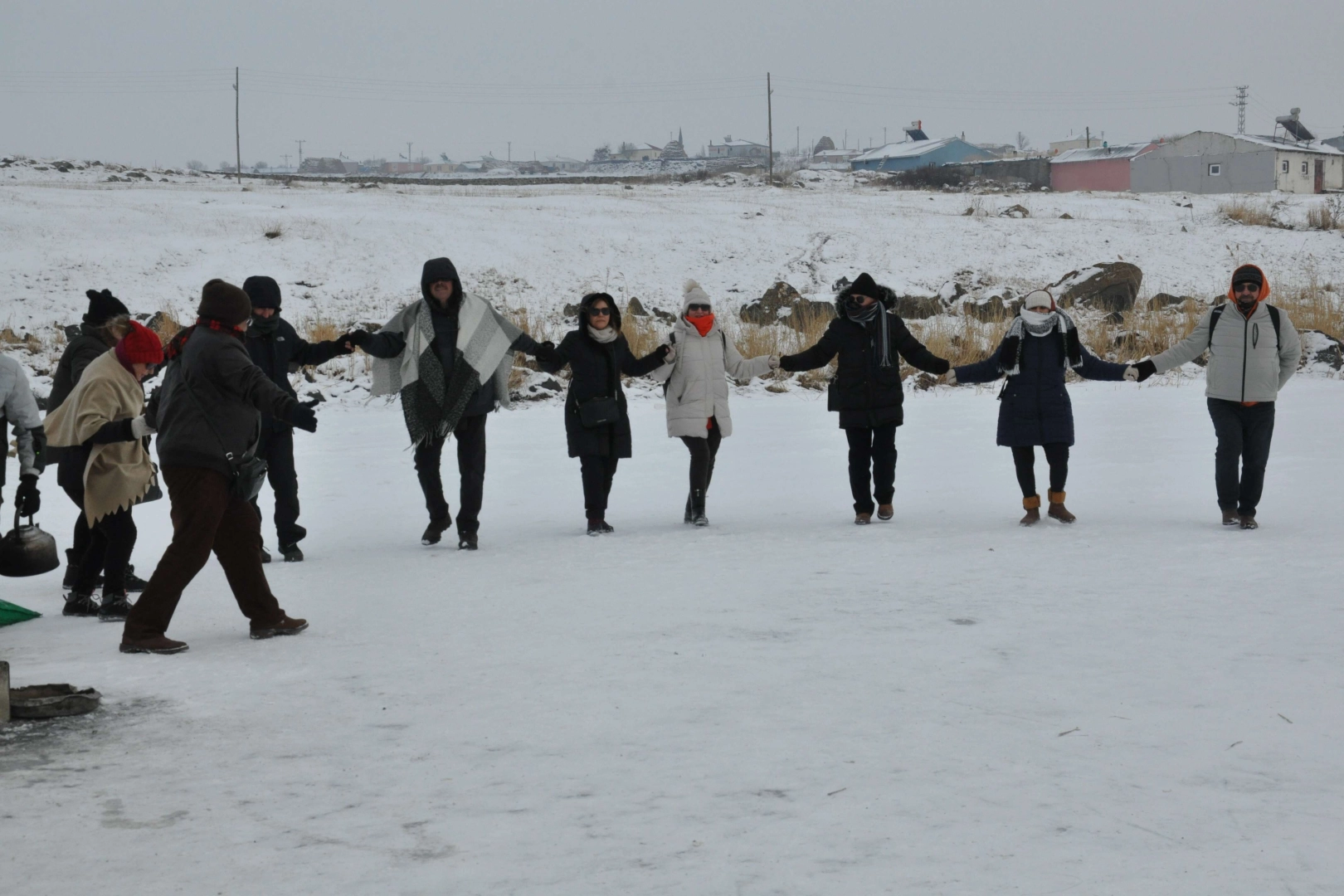 Hava sıcaklığının eksi 19 dereceye düştüğü ve yüzeyi tamamen buzla kaplanan Çıldır Gölü, turistlerin yoğun ilgisini görüyor. Kars’a gelen turistler Taşbaşı Köyü Yunus Yerinde önce atlı kızaklarla soğuk ve tipiye aldırış etmeden buz üzerinde dörtnala giderek kızak keyfini yaşıyor. Ardından Karadeniz müziğine eşlik ederek horon tepiyor. Gönüllerince eğlenen turistler, buz üzerinde unutulmaz bir gün yaşıyor.