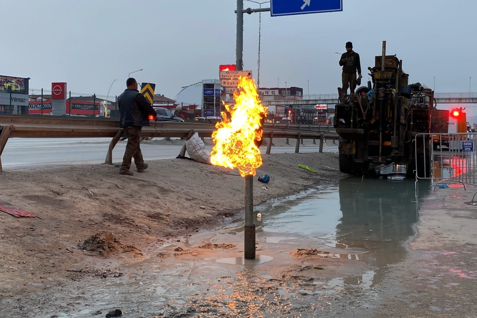Kocaeli Kartepe’de 17 Şubat'ta metro inşaatında çıkan ve 13 gündür yanan metan gazına ek olarak, aynı bölgede D-100 karayolu yanında yeni bir gaz kaçağı tespit edildi. Ekipler güvenlik önlemleriyle gazı kontrollü şekilde yakarak önlem alıyor.