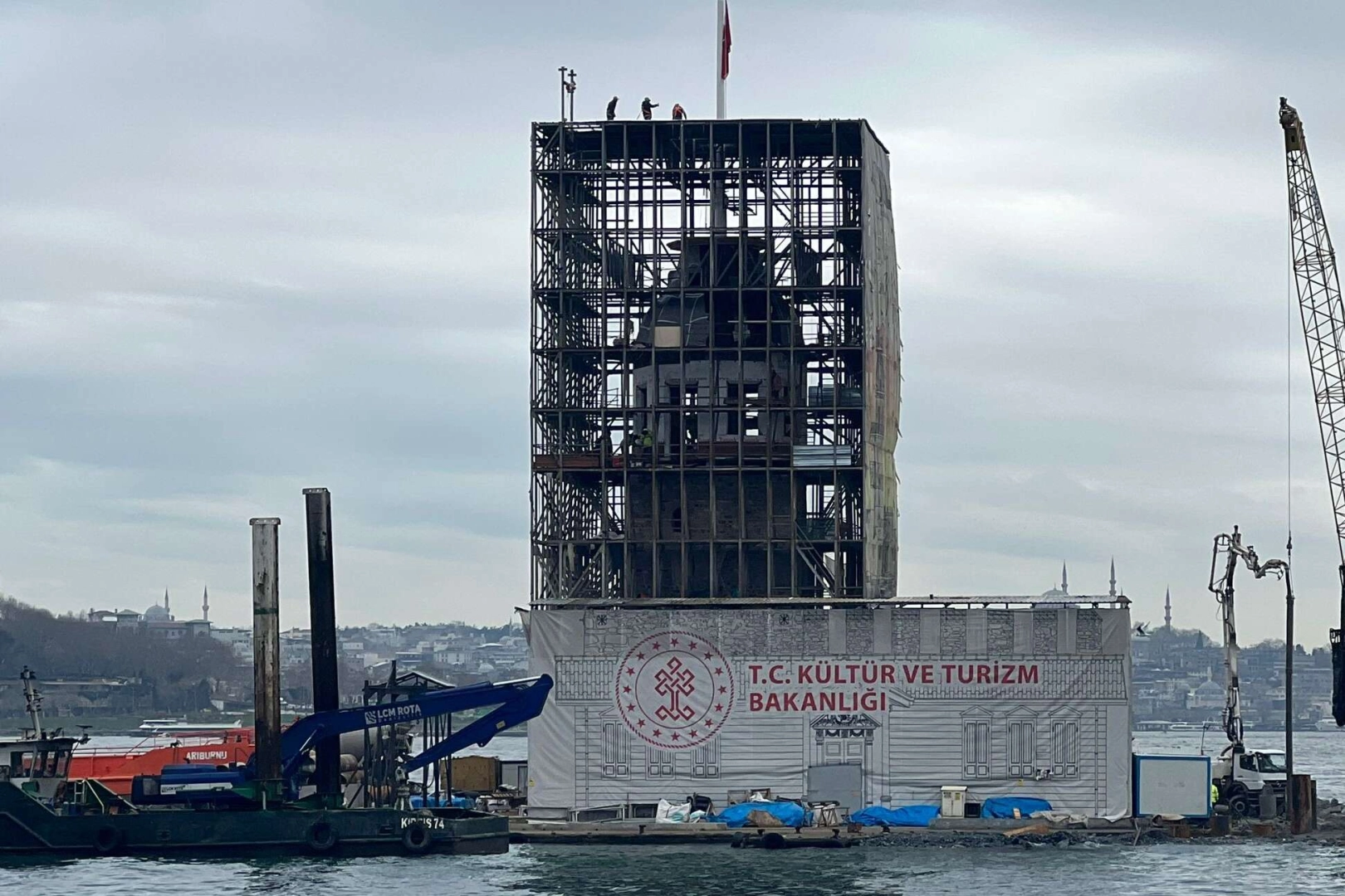 İstanbul’un incisi Kız Kulesi'nde Kültür ve Turizm Bakanlığı tarafından 2021 yılında başlatılan restorasyon çalışmaları hız kesmeden devam ediyor. Restorasyon çalışmaları süren Kız Kulesi’nin son hali havadan görüntülendi. Kurulan iskelede ekiplerin restorasyon çalışmalarına devam ettiği, çevresinde ise alt yapı çalışması için borular bulunduğu görüldü.