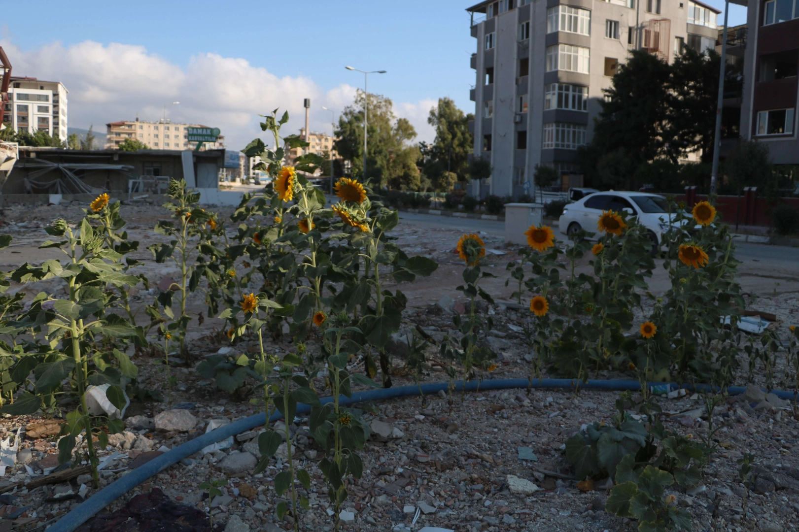 Depremin vurduğu Hatay’ın Antakya ilçesinde yıkılan binaların ve iş yerlerinin enkazında ayçiçeği ve mısır yeşerdi.