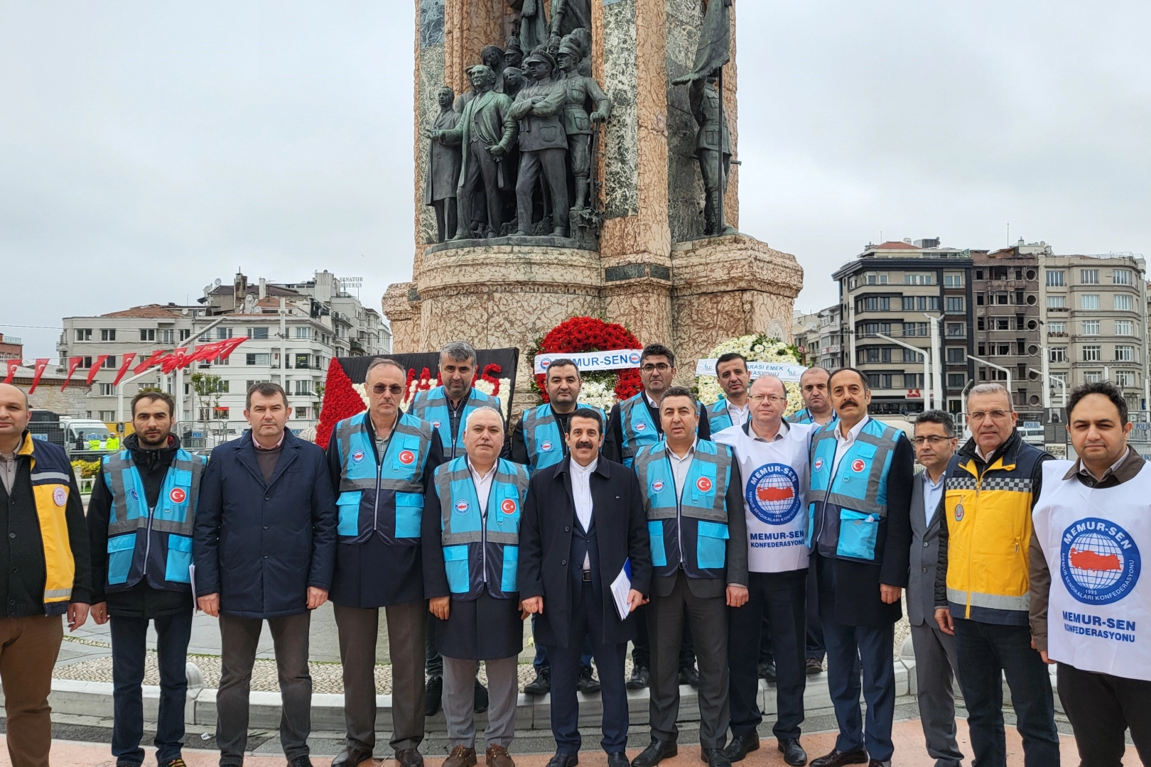 Memur-Sen İl Başkanı Cesur Öztürk ve beraberindeki grup 1 Mayıs Emek ve Dayanışma Günü nedeniyle Taksim Meydanı’na gelerek çelenk bıraktı. Grup, yaşasın Özgür Filistin sloganı attılar. Memur-Sen İl Başkanı Cesur Öztürk” Bugün Samsun’da on binler toplanarak İnşallah emek ve dayanışma bayramını kutlayacağız. Bugün burada Taksim’de sembolik olarak çelengimizi bıraktık. Filistin’den Suriye’ye Arakandan Doğu Türkistan akan kan dursun vahşet ve zulüm son bulsun istiyoruz. İnsanlığa acı ve gözyaşından başka bir şey vermeyen çarpık düzene karşı inancın ve emeğin aziz sayıldığı bir geleceğe akla, vicdana ve ahlaka dayanan bir paradigmaya çağrı yapıyoruz. Bu ülkenin emekçileri, emeklileri, engellileri, kadınları, gençleri, tüm kamu görevlileri olarak hep birlikte emek sömürüsüne sıfır tolerans diyoruz. Emeğin hakkının alın teri kurumadan verildiği, insanca yaşamı mümkün kılacak, insan onur ve haysiyetine uygun çalışma şartlarının tesis edildiği bir sistem için hep birlikte mücadelemizi ve azmimizi vurguluyoruz” dedi.