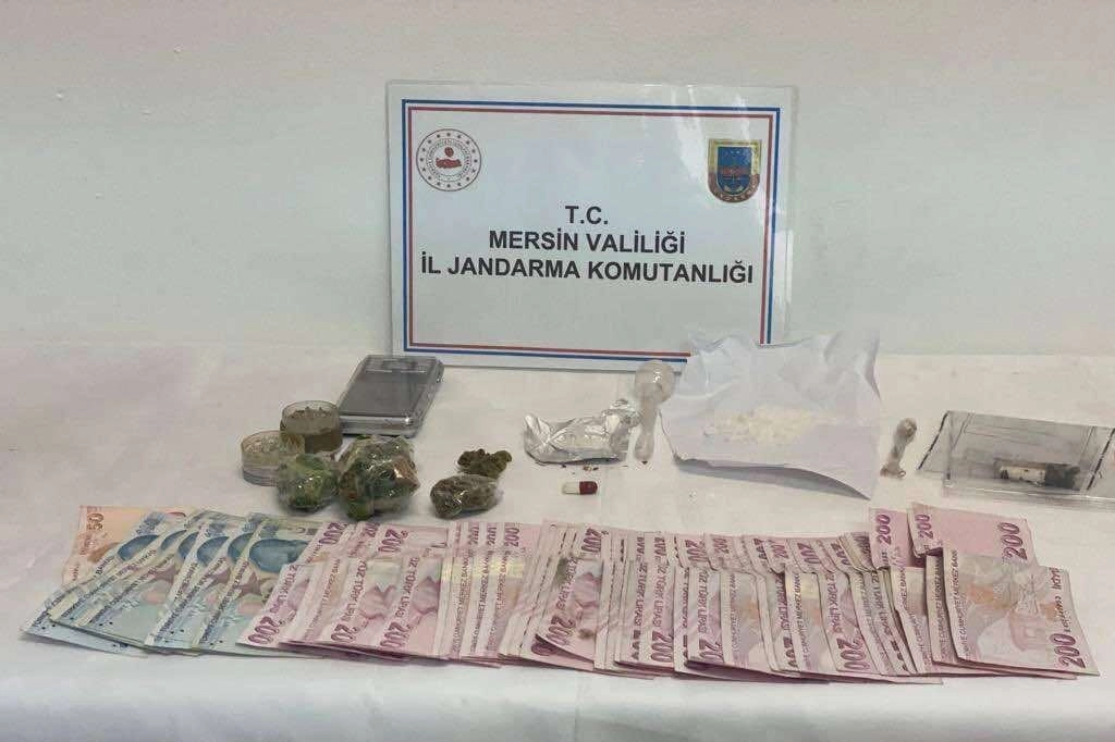 İl Jandarma Komutanlığından yapılan açıklamaya göre, Mezitli, Çamlıyayla ve Silifke ilçelerinde şüpheli şahıslara yönelik başlatılan araştırmalar sonucunda 3 şahsın uyuşturucu madde kullandığı ve ticaretini yaptığı tespit edildi. Tespit edilen şüphelileri takibe alan ekipler, düzenlediği operasyon ile şahısları gözaltına aldı. Şüphelilere ait ev, araç ve iş yerinde arama yapan ekipler, 1 kilo 663 gram kubar esrar, 674 kök hint keneviri, 187 gram kenevir tohumu, 25 gram metamfetamin, 1 uyuşturucu hap, 1 hassas tartı, 1 esrar öğütücü aparat, 1 uyuşturucu madde kullanma aparatı ile 7 bin 765 TL paraya el koydu.