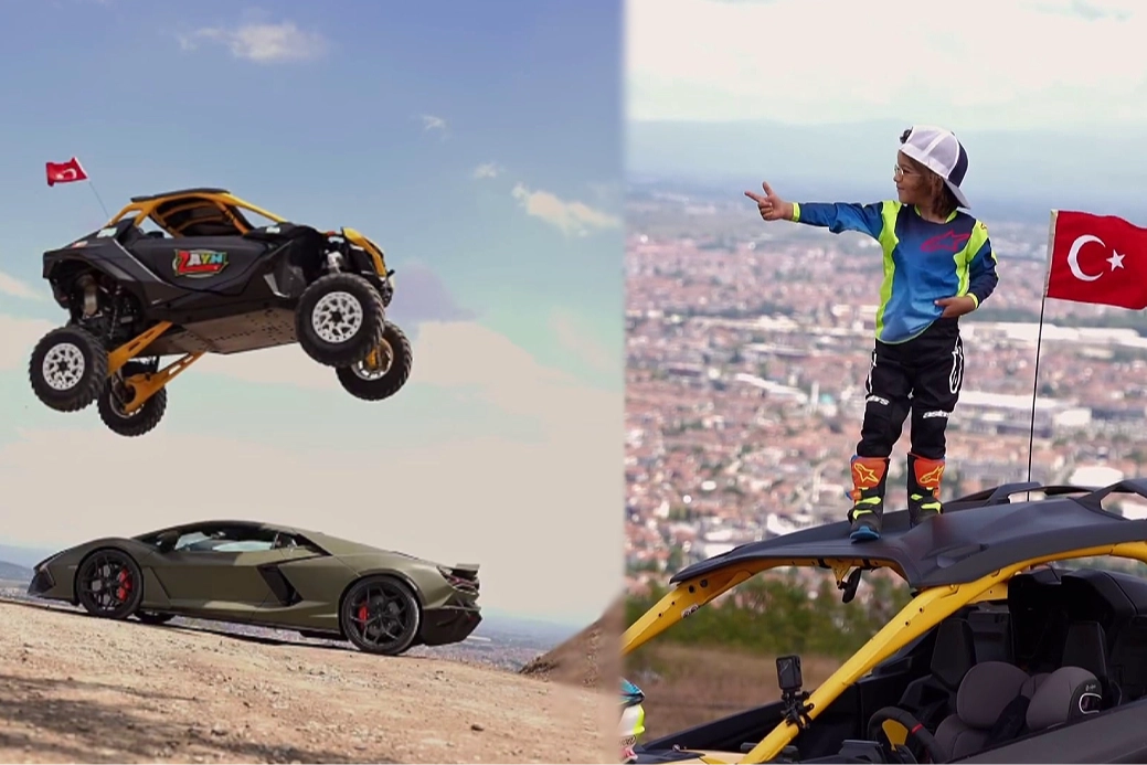 Yaptıklarıyla dikkatleri üzerine çekmeye devam eden Kenan Sofuoğlu’nun 5 yaşındaki oğlu Zayn, bu kez Kırantepe’de ATV ile milyonluk Lamborghini Revuelto’nun üzerinden atlayarak akrobasi gösterisi yaptı. Adeta nefes kesen gösteri sonrasında minik Zayn’ın zafer pozu ise Yusuf Dikeç’in olimpiyatlardaki atıcılık hareketi oldu. "Zaynn arabalar uçmaz!" notuyla paylaşılan sosyal medya görüntüsü milyonlar tarafından izlenirken beğeni yağmuruna tutuldu.